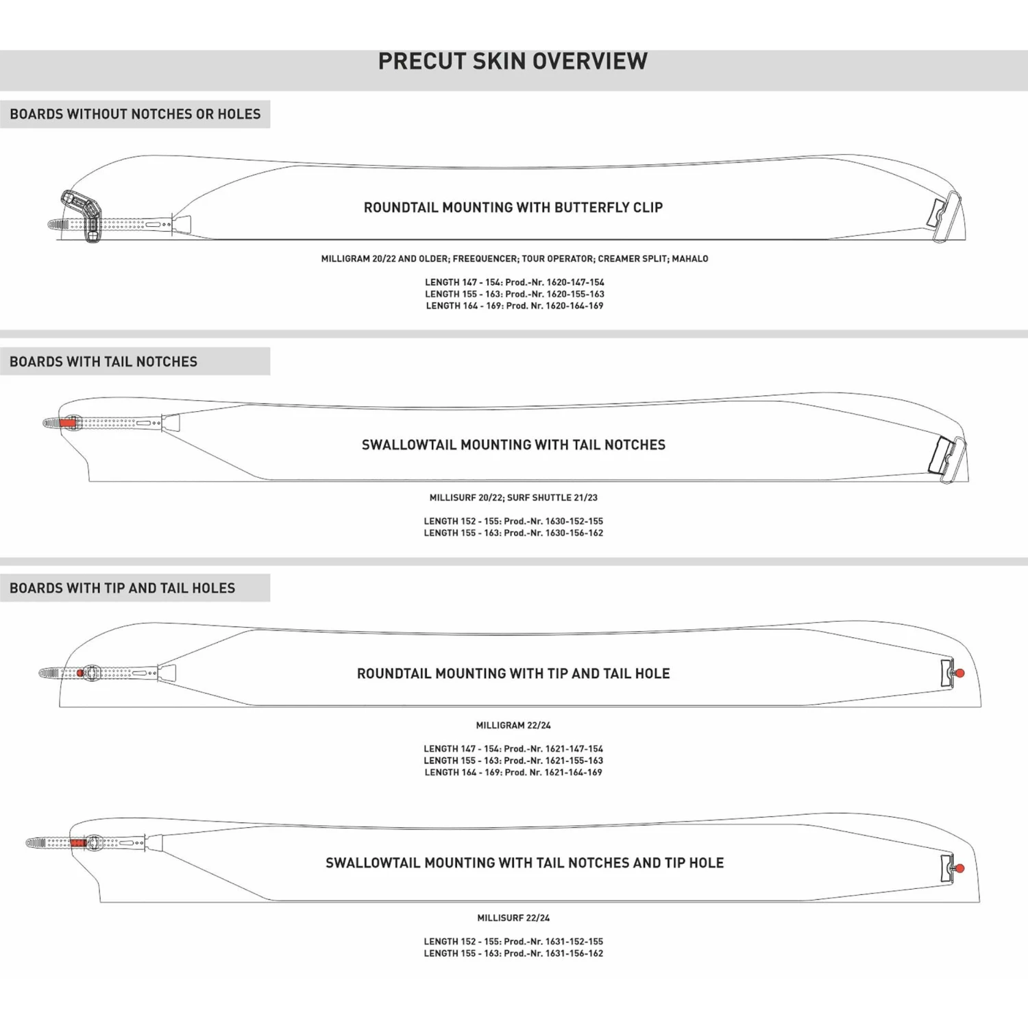 - Precut Hiking Skin Mohair Blend / Standard Tailshape 147 – 154 Kompatibel: m/ Amplid Models Lovelife Split 148 – 153, Milligram 153 eller lignende (m/ Butterfly clips)