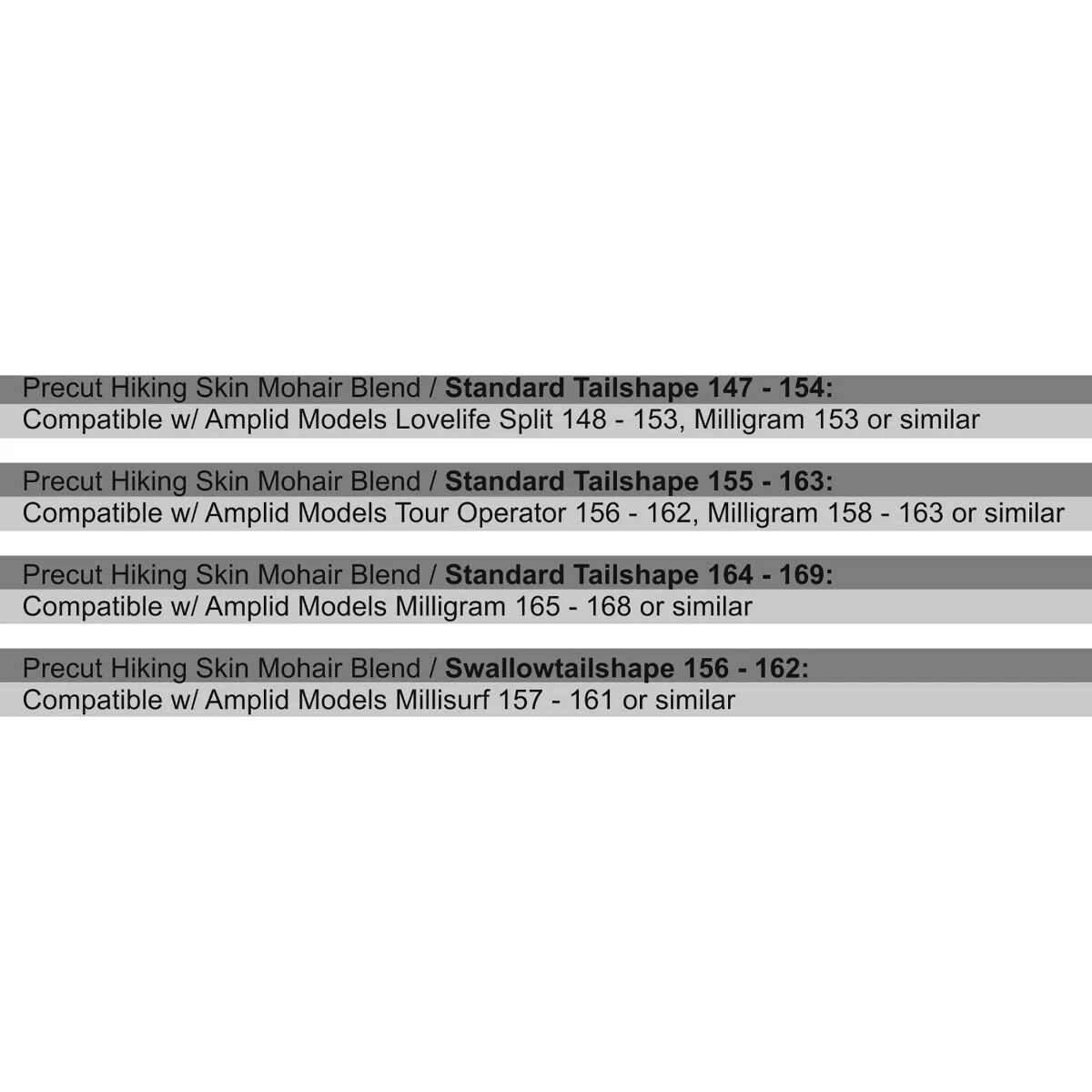 - Precut Hiking Skin Mohair Blend / Standard Tailshape 147 – 154 Kompatibel med Amplid Modeller Lovelife Split 148 – 153, Milligram 153 eller lignende (m/ Butterfly clips)