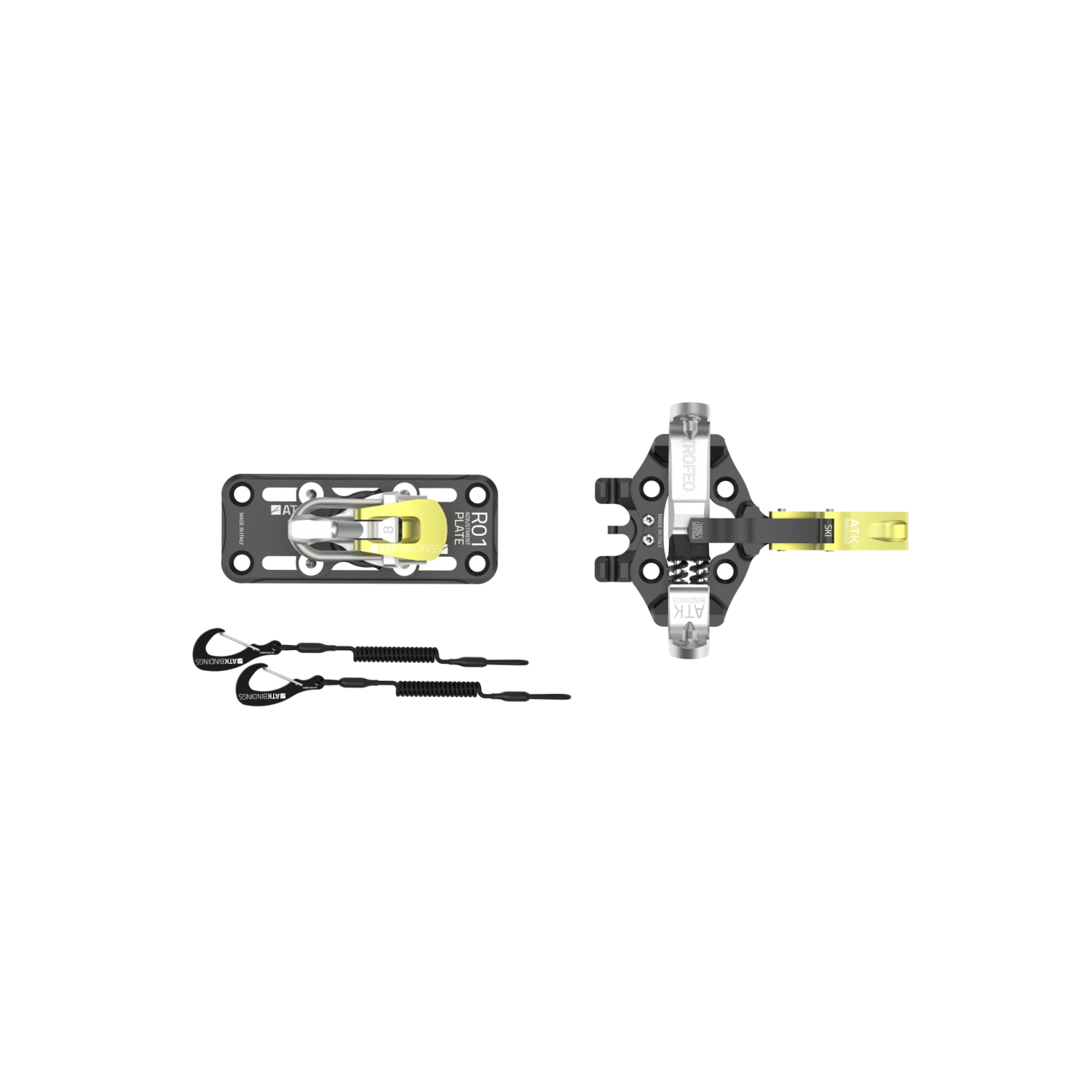 ATK Bindings® R&D TEAM har valgt en ny stållegering til flyindustrien, som giver et ekstremt elastisk modul. Takket være dette specialstål kunne ATK Bindings® slette halvdelen af tåfjedrene (fra 4 til 2) og skabe en fast venstre arm, den såkaldte “MONOLINK® 1.0”.