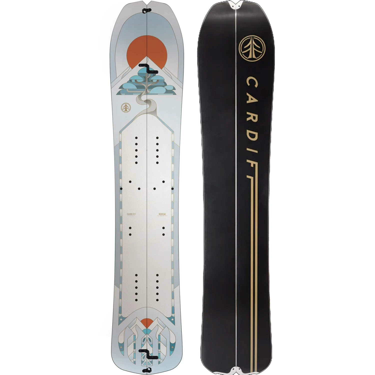 Alle CARDIFF splitboards har en skrå indvendig kant på splitski’en i både spids og hale, så du kan tage på tur uden hætte og lave skadesfri forbindelser.