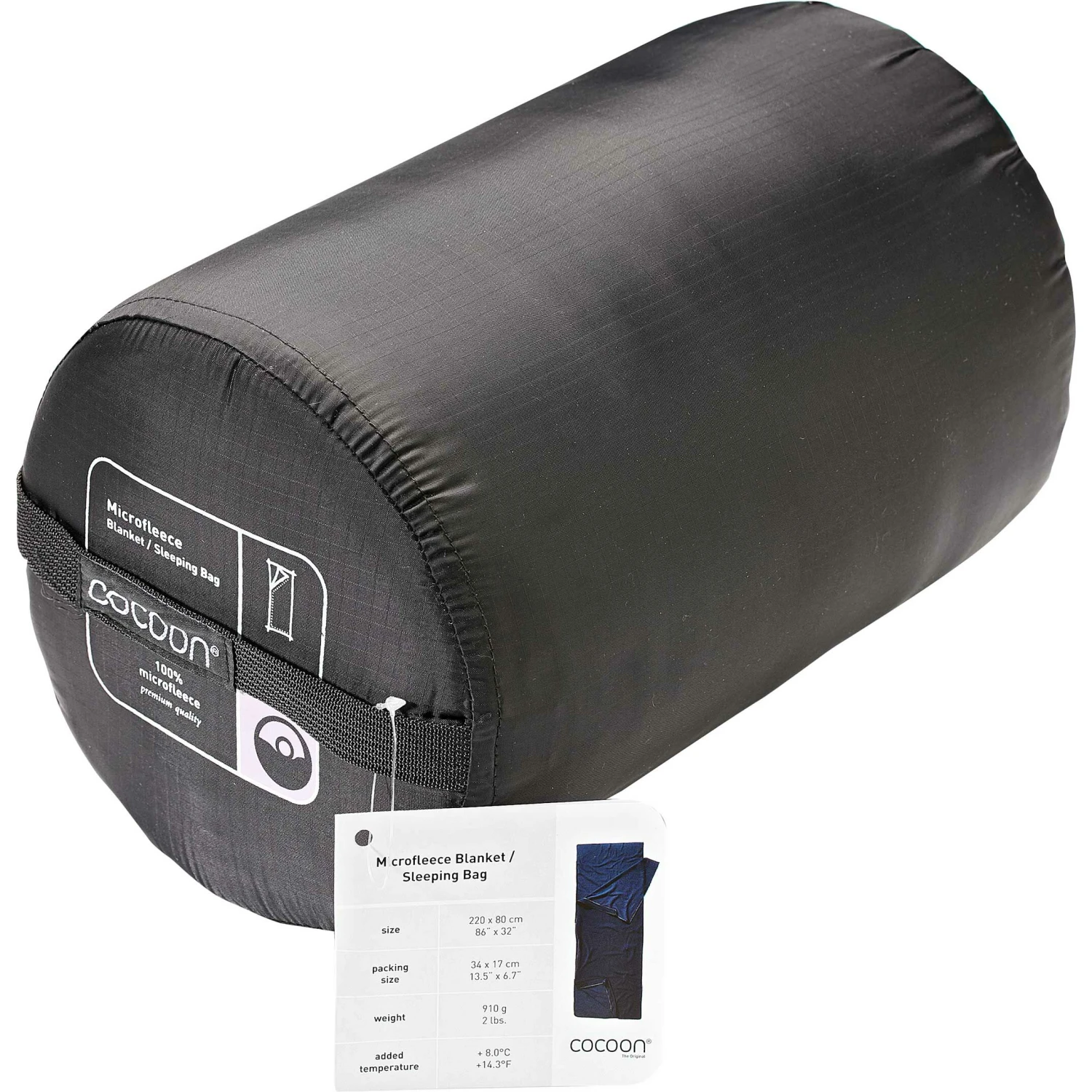 Cocoon Microfleece Blanket & Sleepingbag er en blød og hurtigtørrende sommersovepose i microfleece med lynlås. Microfleece Blanket & Sleepingbag kan bruges som et fleecetæppe, når den er åbnet med lynlås. Den kan også lynlåses til alle andre Cocoon-modeller med lynlås for at lave en sovepose til to personer.