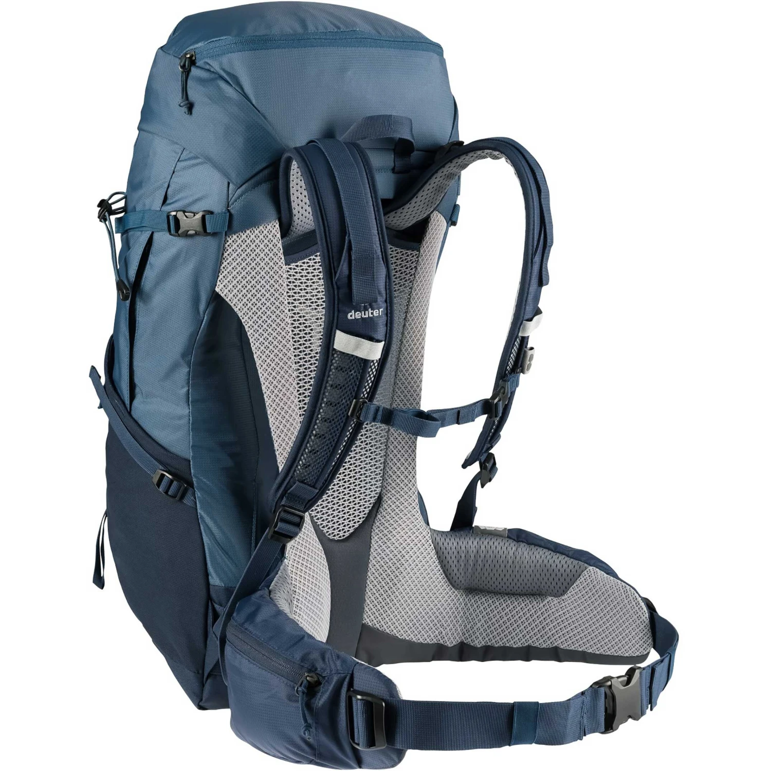 Deuter Futura Pro 36 er gennemtænkt i alle detaljer og er udviklet til flerdagsture, hvor komforten ikke må mangle. Vandrerygsækken har derfor det ergonomiske Aircomfort Sensic Pro mesh rygsystem. Dette giver maksimal rygventilation på grund af det innovative mesh. Derudover giver de bevægelige VariFlex ECL hoftefinner med ergonomiske polstrede indlæg mulighed for energibesparende bærestilling. Takket være den klare opdeling af rummene kan genstande nemt og effektivt opbevares i lågrummet, i sidebælgelommerne, i det separate bundrum og i det rummelige hovedrum.