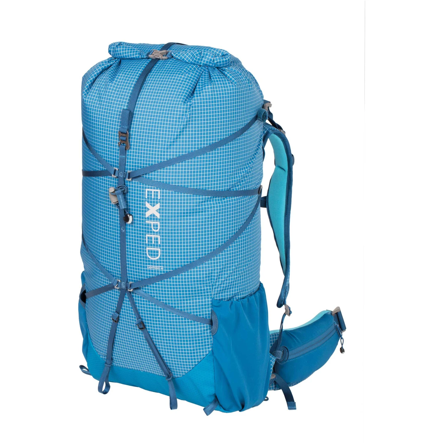 Exped Lightning 45 Wmns er en ekstremt let rygsæk med rulletop til hurtige og lette eventyr med flere overnatninger, der tilbyder enestående komfort, bevægelsesfrihed og bærende stabilitet. Den har vandreturs-DNA med en kapacitet som en rygsæk med intern ramme. Kvindernes version passer til kortere kroppe og har kvindespecifikke hoftebælter og skulderstropper.