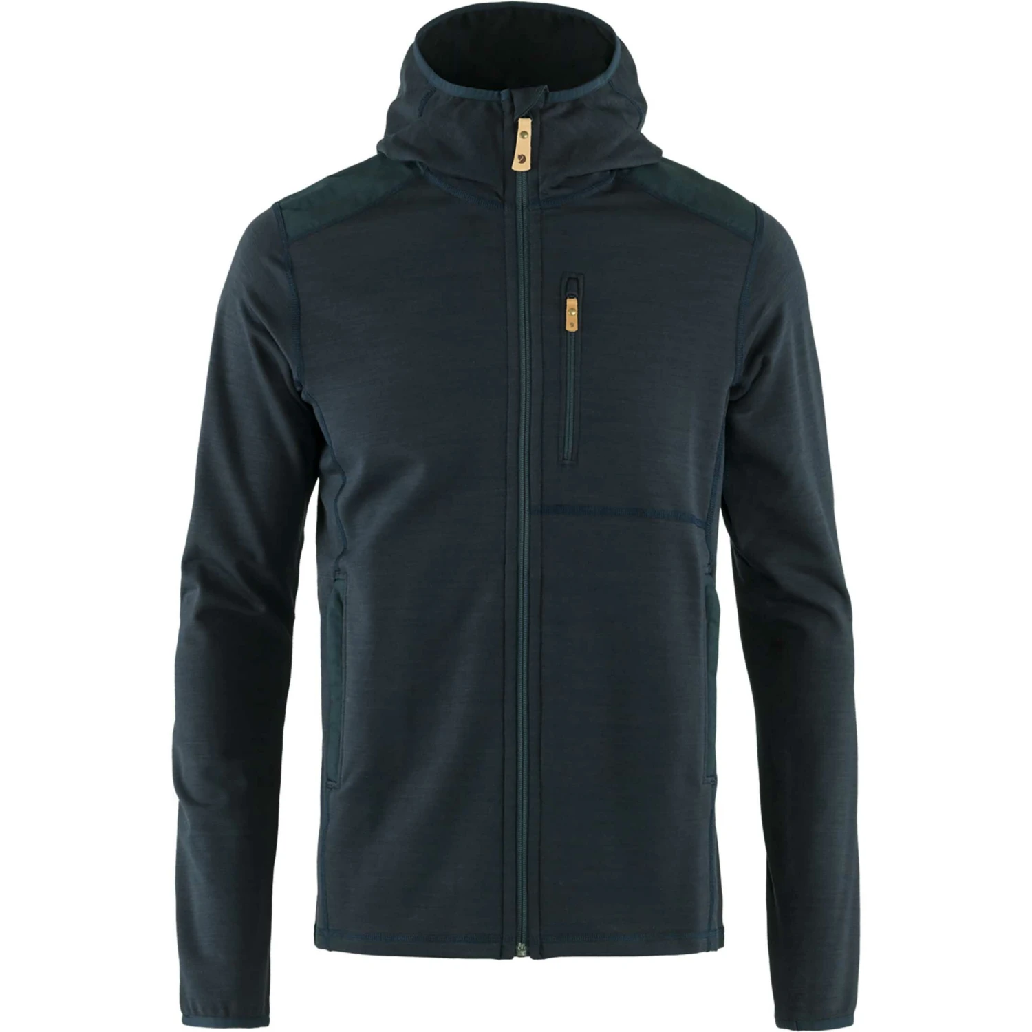 Fjallraven Keb Fleece Hoodie til mænd. Klæd dig på til livets højdepunkter med Keb Fleece Hoodie i en funktionel uldblanding. Den fladstrikkede, gnidningsfrie yderside glider let ind under en skaljakke, mens indersidens luftige struktur varmer og transporterer fugt væk. Et alsidigt og komfortabelt mellemlag, der er lige så velegnet i sommerens bjerge som til skisport om vinteren. Funktionel fleece, der varmer og transporterer fugt væk. Forstærkninger i G-1000 Eco på skuldrene. To håndlommer med lynlås. Lodret brystlomme med lynlås. Velsiddende hætte. Lynlås foran med hageskærm. Glat yderside, børstet inderside. Polyester (delvis genanvendt), uld og elastan. Elastiske kanter omkring hætte, manchetter og kant.