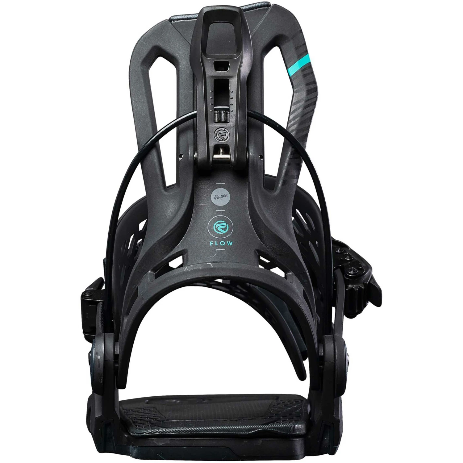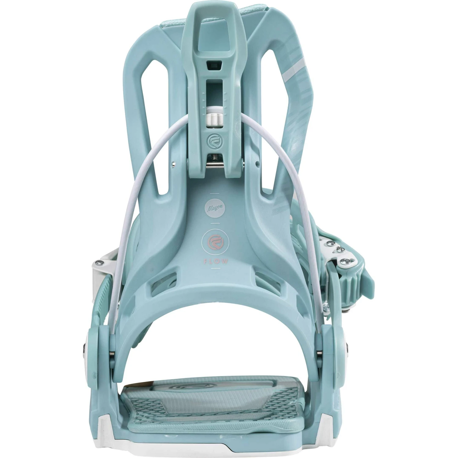 Flow Mayon er en medium-stiv, brugervenlig mellembinding. Den glasfyldte nylonbaseplade er lavet af plastik, men forstærket med nylon. Det gør bindingen lettere og stærkere. Brugen af plastik skaber også en masse dæmpning. Denne baseplate er rockered, hvilket betyder, at baseplate kan bevæge og vippe med boardets og rytterens naturlige bevægelse.