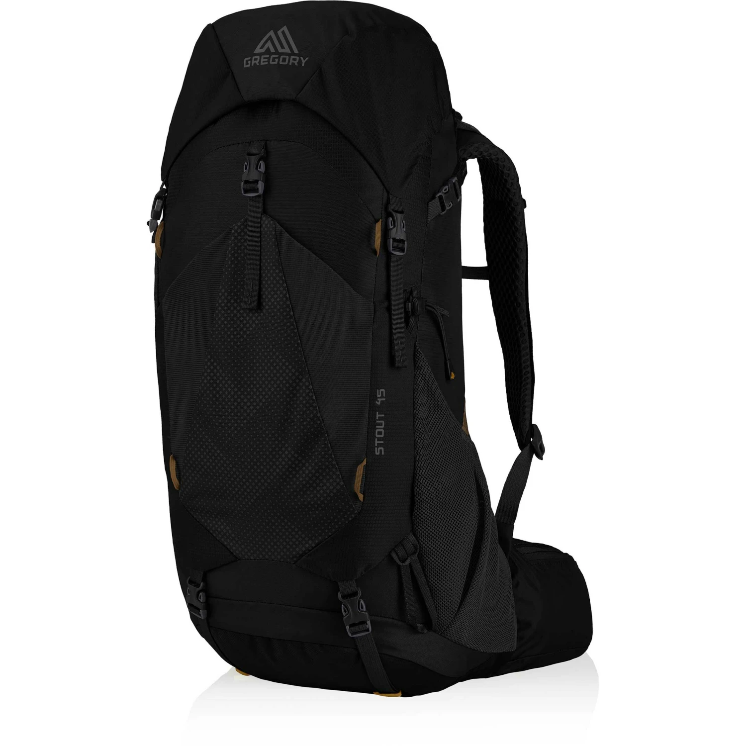 - Dual side mesh pockets featuring side trail access with top and bottom compression straps (trail access on Stout 70/60 & Amber 65/55)