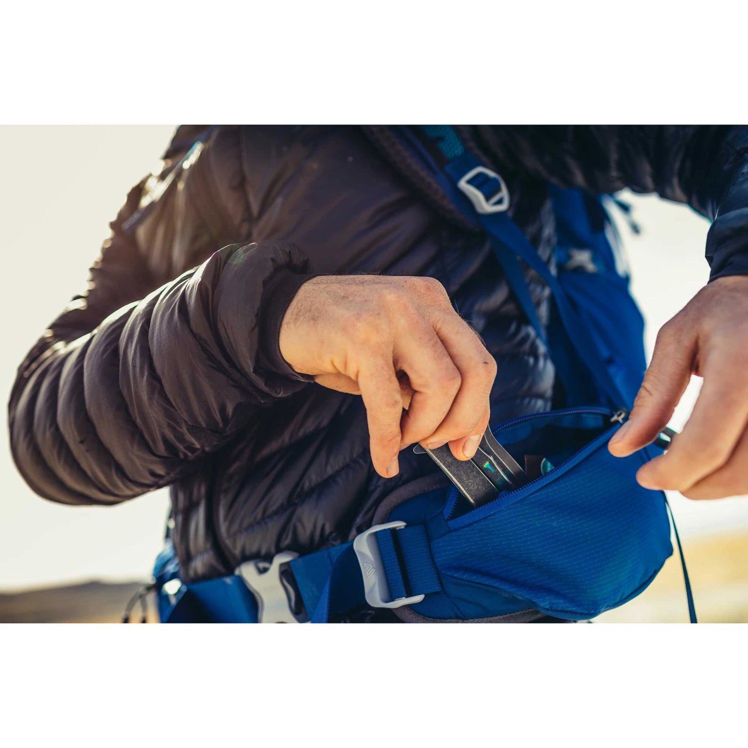 - Lommer med lynlås på hoftebæltet