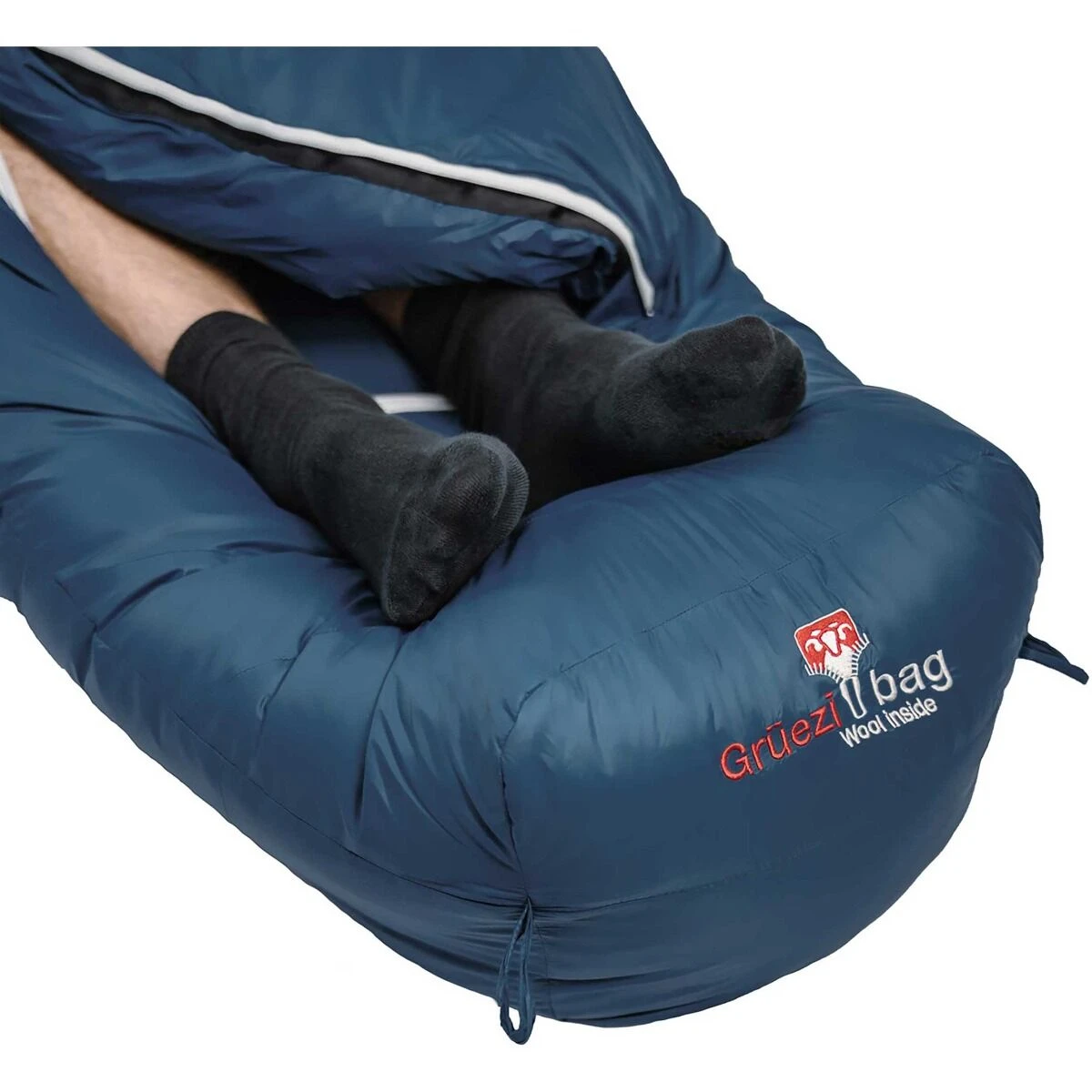 Grüezi Bag Biopod DownWool Ice er den ideelle ledsager til trekking, camping og bjergture ned til frysepunktet eller som en 3-sæsons sovepose til dem med frostskader. Denne komfortabelt udskårne mumie-sovepose har et meget praktisk puderum – sæt f.eks. en fleecejakke i, og du har en pude, der ikke glider under søvnen. Soveposen er isoleret med DownWool: en naturlig isolering af 70% dun og 30% uld, der kombinerer fordelene ved begge naturmaterialer. Meget god isolering og et behageligt velværeklima.