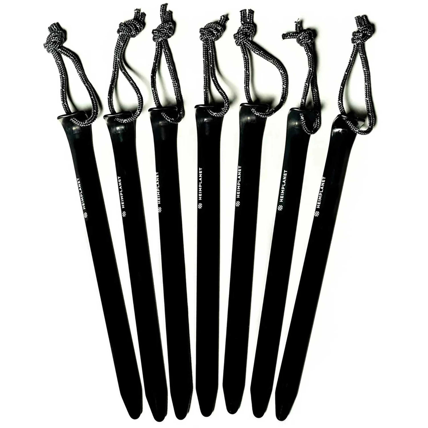 Heimplanet aluminium V-pegs. Et sæt med 8 diskrete, stilfulde og stærke V-formede pløkker i aluminium til dit telt eller din presenning.