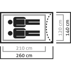 - Gulvareal: 5,2 m² (indvendigt telt: 4,2 m²)