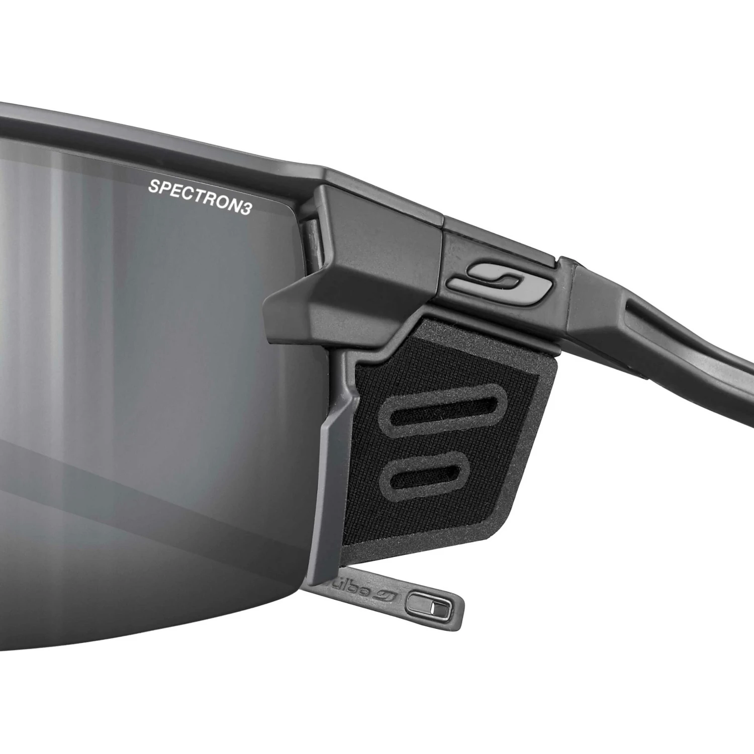 Julbo Ultimate Cover solbriller kan følge med til træning i dalen til at nå de højeste tinder. CustomFIT justerbare ben, kombineret med Grip Tech struktur, giver et tilpasset greb og en letvægt. 3D-næsepartiet giver greb og en panoramalinse for beskyttelse og visuel komfort takket være Reactiv Photochromic linser.