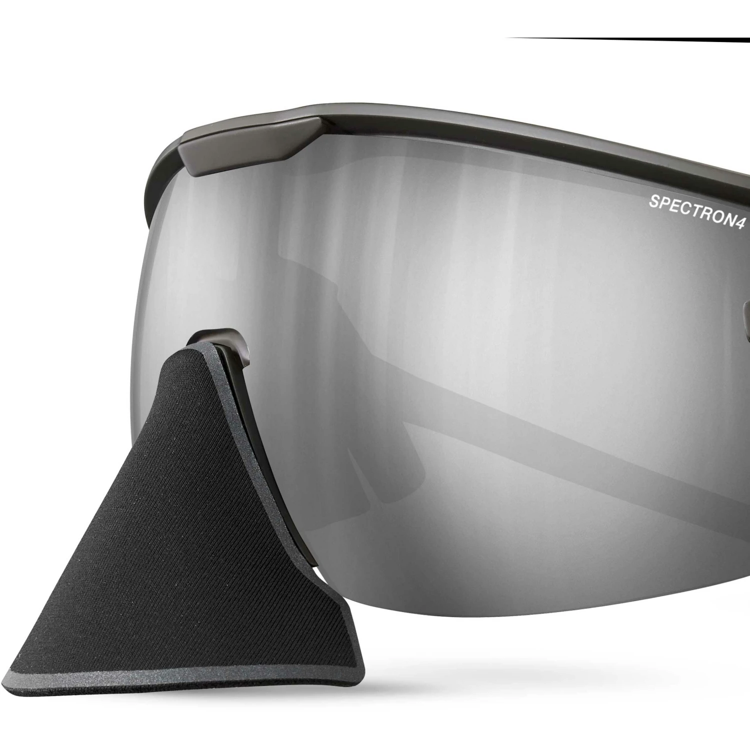 - Aftagelig Spandex Nose Guard : Spandex tekstilbeskyttelse på broen for at reducere risikoen for solskoldning under intens sollys i bjergene. Spandex er et komfortabelt, åndbart, let og holdbart materiale, der giver total beskyttelse mod UV-stråling
