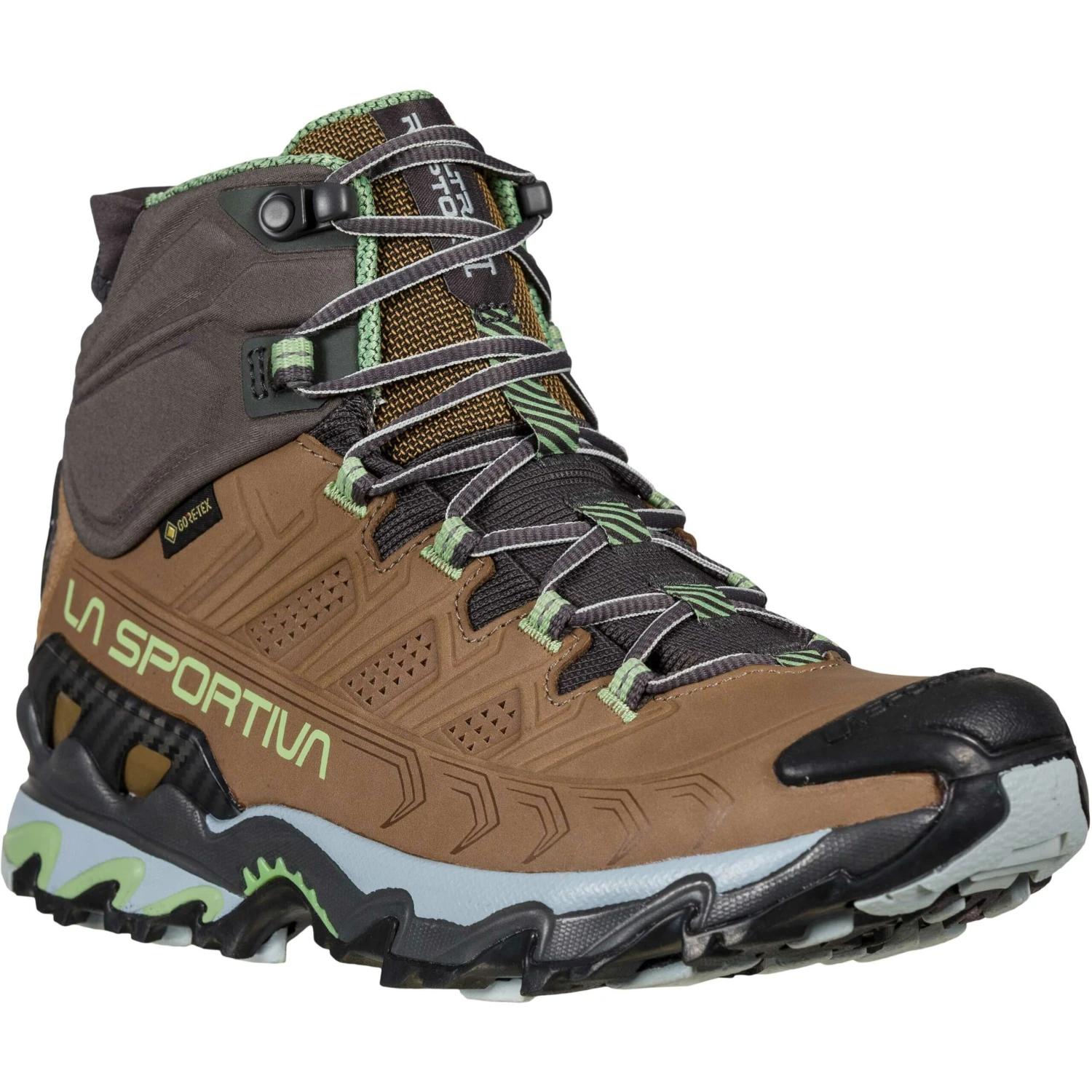 La Sportiva Ultra Raptor II Mid Leather Woman GTX er den øverste version af Ultra Raptor II Mid-modellen i læder og er ideel til hurtige vandreture og udflugter med lette belastninger. Overdelen i nubucklæder er forstærket med kompressionslinjer, der garanterer fodindpakning og høj stabilitet. Den er slidstærk og åndbar og er perfekt til vandreture. Vandtæt og åndbar takket være GORE-TEX Extended Comfort-membranen. Den bløde Comfort Collar beskytter anklen mod indtrængen af sten eller mudder og integrerer easy-fit spoileren for maksimal pasformsvenlighed. Den bageste stabiliserende hæl giver perfekt kontrol på tværbjælkerne. Resultatet er en sko, der kan bæres i mange timer i træk og er velegnet til offroad-brug på alle typer terræn.