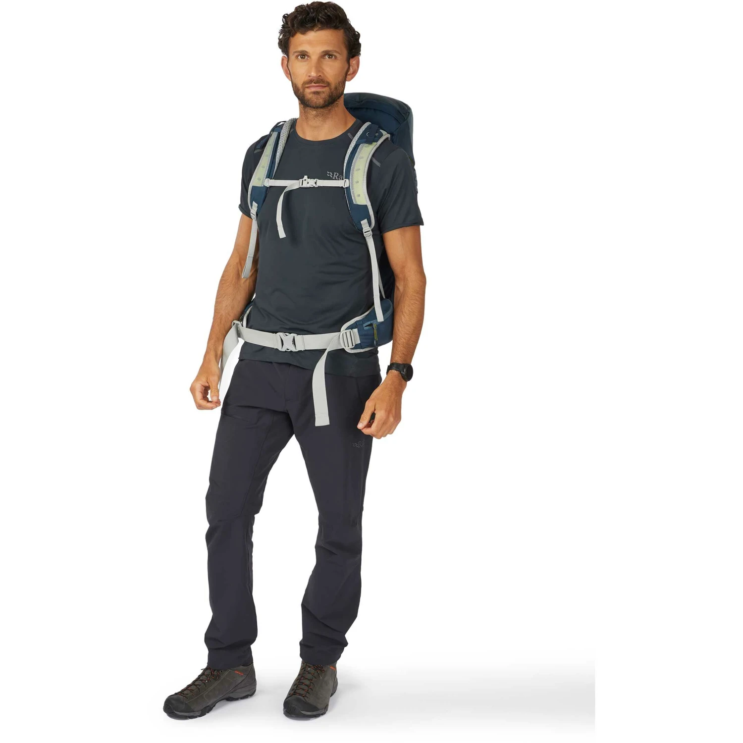 Rygsækken har et hoftebæltesystem med træk fremad, så du nemt kan justere pasformen, og et regnslag, hvis du skulle blive fanget ude i en storm. Pakken er kompatibel med en 3L vandblære og flankeret af sidelommer til vandflasker i stretchnet, og den gør det nemt at holde sig hydreret og tanket op, og lommerne med lynlås i hoftebæltet er ideelle til at gemme snacks. Der er masser af plads til dit udstyr i de udvidelige sidelommer, lynlåslomme i låget og en frontlomme, der er perfekt til at gemme et ekstra lag. Vandrestave kan fastgøres ved hjælp af det praktiske bungee fastholdelsessystem.