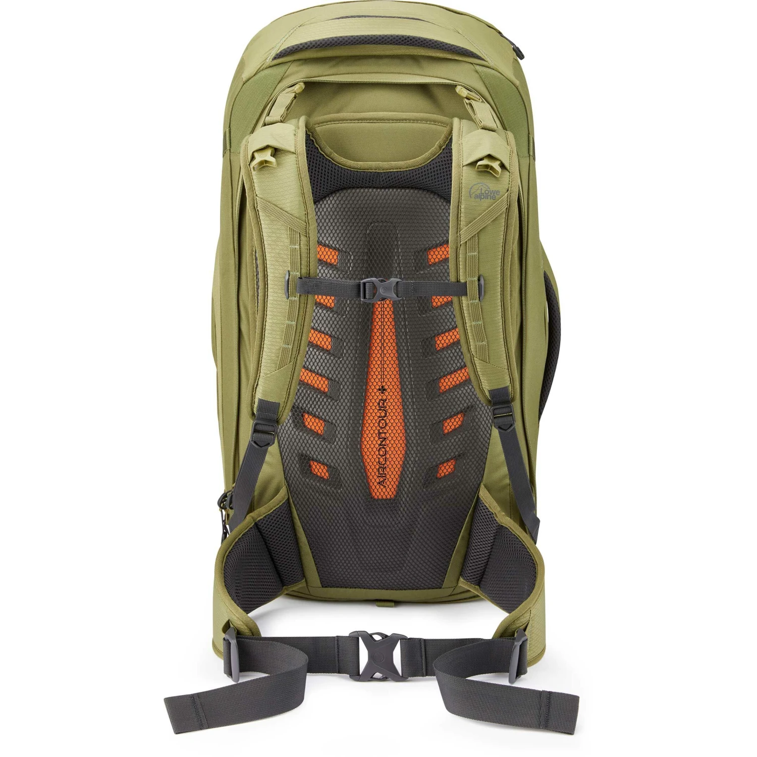 Udover det justerbare Air Contour+ bæresystem har hovedrygsækken robuste håndtag i top og side, et integreret rejsecover og en lyngrebslomme i toppen med sikker pasplads for nem organisering under transport.