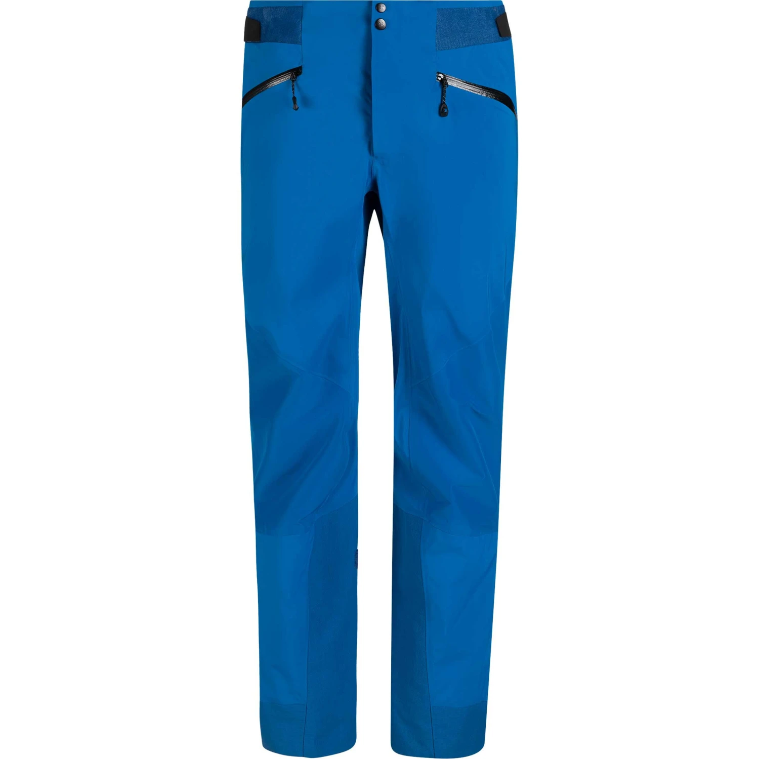 Mammut Nordwand Pro HS bukser til mænd. Robuste, lette og elastiske Gore-Tex® Pro® hardshellbukser med “most rugged”-teknologi for den perfekte kombination af vejrbeskyttelse og slidstyrke. Det klatrespecifikke snit giver bevægelsesfrihed på klipperne, mens gamacher, forstærkning af kantforstærkning i sømmene og beskyttelse mod steigejern, fremstillet af praktisk talt uforgængeligt Dyneema®-materiale, beskytter mod steigejern og ru klippevægge. Hvilket betyder: Nordwand Pro HS Pants Men er Mammuts bedste bukser til ekstreme situationer