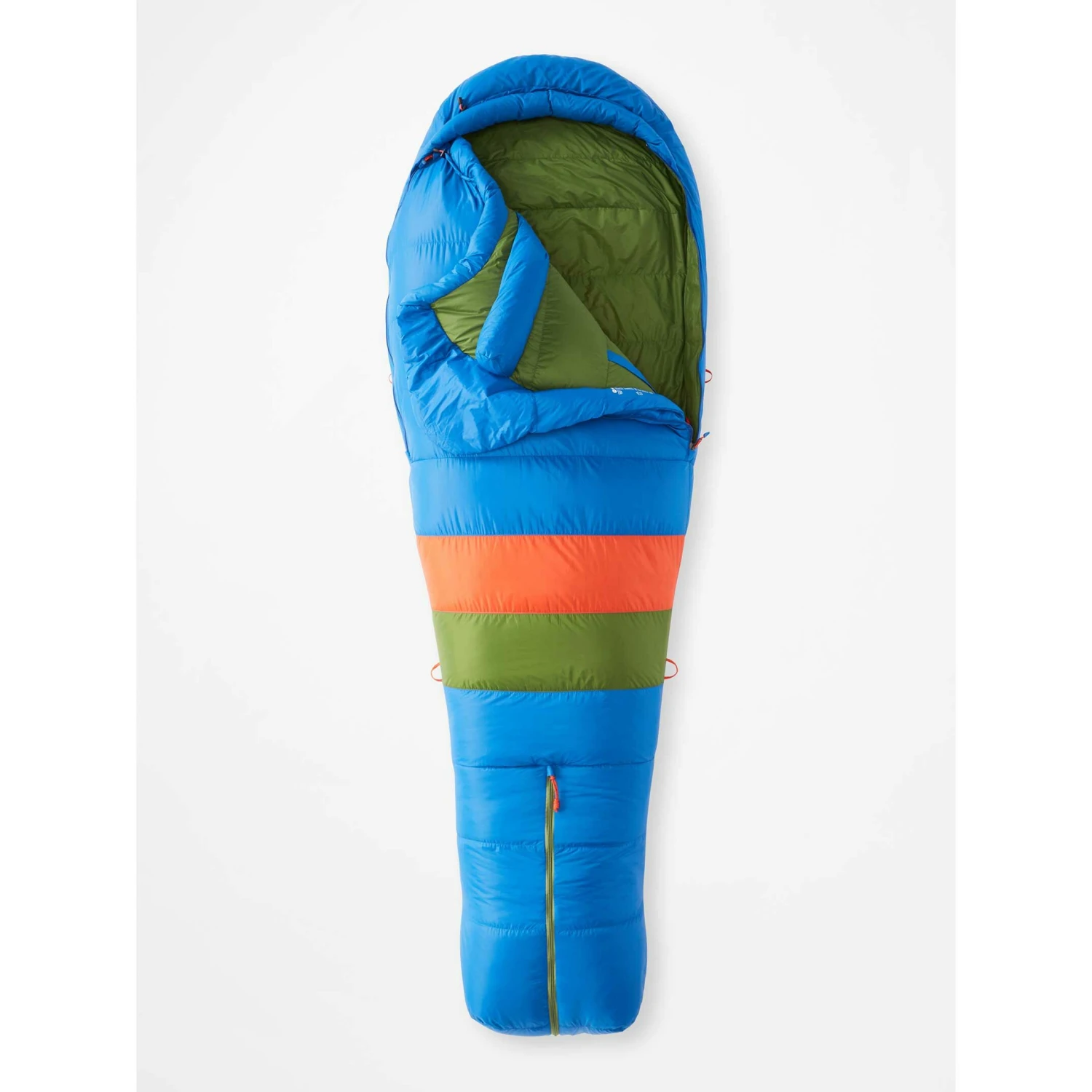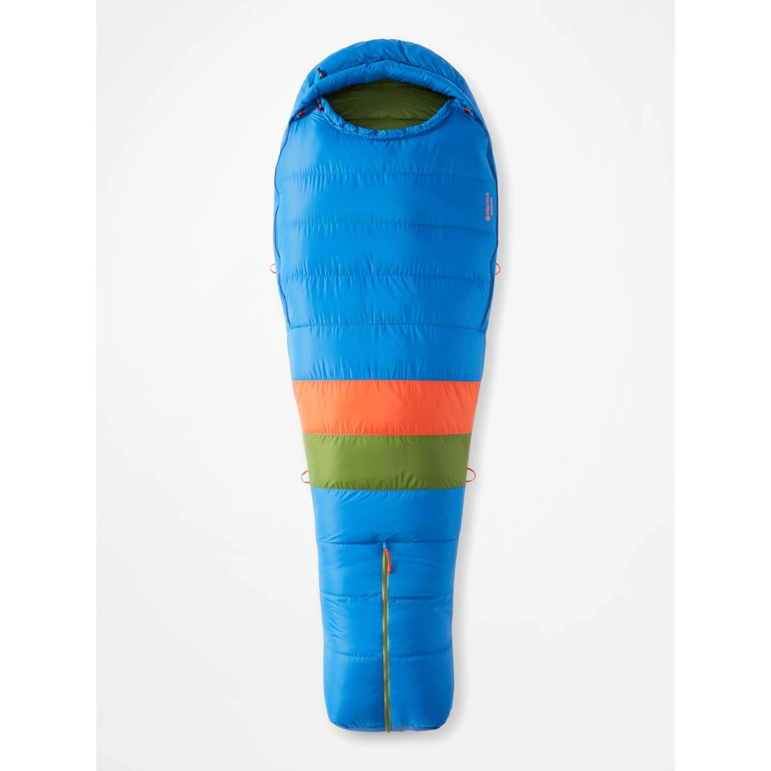 Mød Marmot Sawtooth soveposen til mænd, din nye sovepose til campingnætter langt ind i den kolde årstid. Med lunt 650-fill-power dun holder denne sovepose varmen hvor den skal være, mens dobbelte lynlåse i siderne gør det nemt at kravle ind og ud. Leder du efter mere plads? Åbn fodboksen for at få plads til at strække dig, eller lynlås den op for at få ekstra varme. Åbn de forlængede lynlåsflapper på ekstra kolde nætter for at få en tæppeagtig dækning.