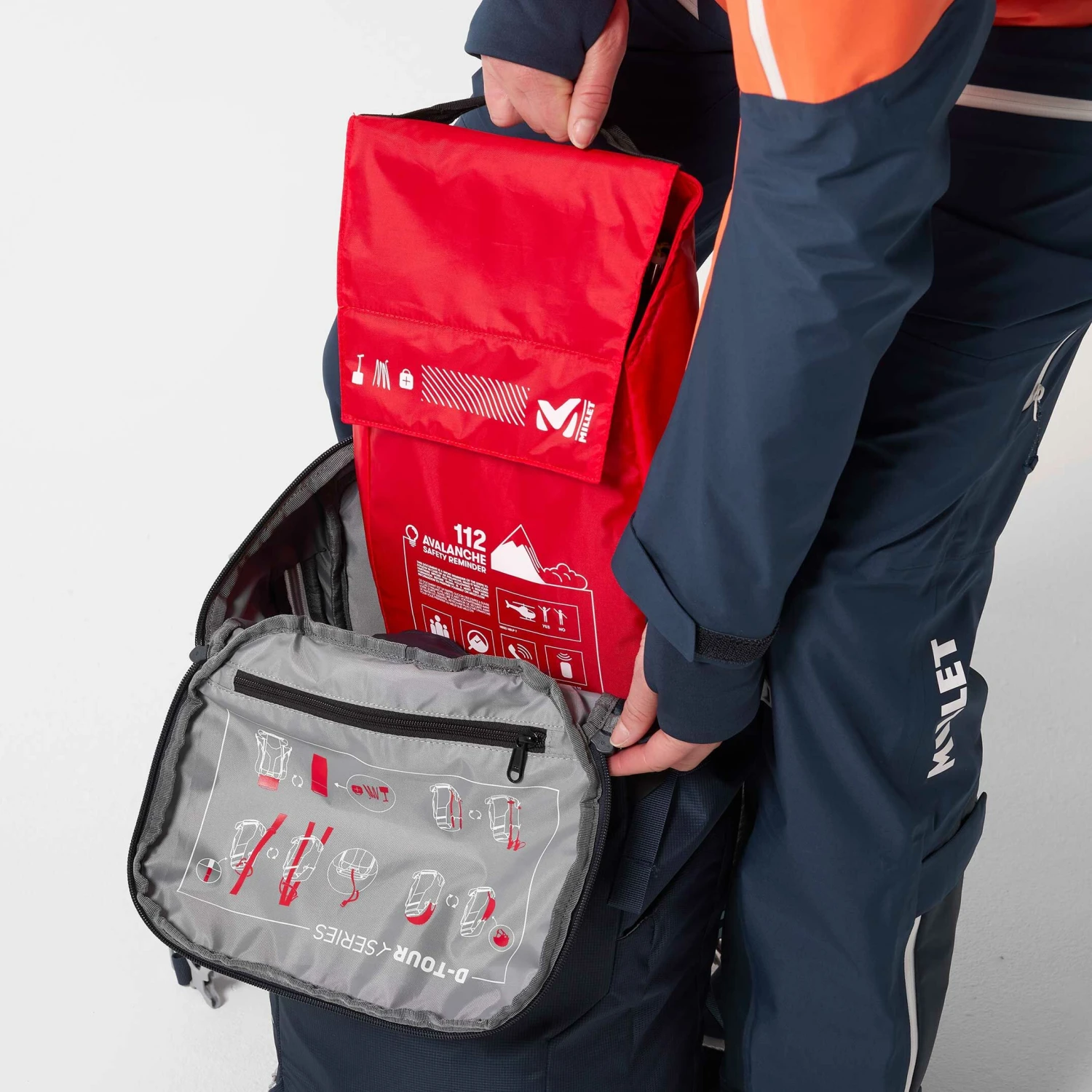 Millet D-Tour 30 W bjergrygsæk til kvinder er en rygsæk til skiture, der er designet til ture på en til to dage med overnatning i hytten. Rygsækken er tilpasset den kvindelige anatomi for en behagelig pasform ved op- og nedkørsel og har en sikkerhedslomme, der opbevarer redningsudstyr (skovl, sonde) og også minder dig om de vigtige trin, der skal følges for en effektiv redningsoperation. D-Tour 30 W har fastgørelsesmuligheder til dine ski, isøkser, hjelm og reb. Tasken har også en smart lomme til en flaske på skulderremmen og en lomme til et hydreringssystem.
