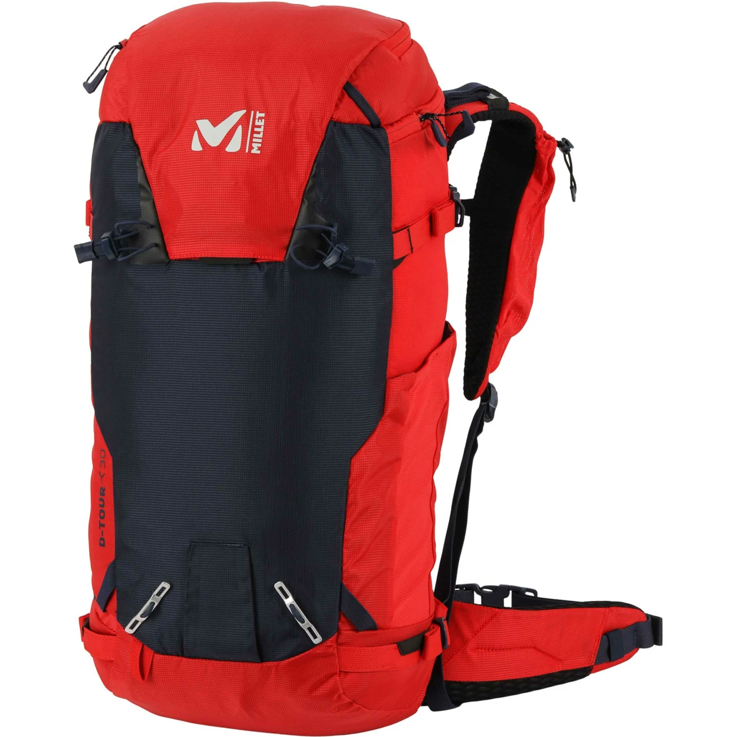 Millet D-Tour 30 er den ideelle skitouretaske til en til to dages skiture (med en nat i hytten). Den er udstyret med en sikkerhedslomme, som Millet har designet specielt til denne serie af bjergrygsække, og som er lavet til at opbevare alt det nødvendige redningsudstyr (skovl, sonde og førstehjælpskasse) og tydeligt minde dig om de vigtige trin, du skal følge for at opnå optimal effektivitet. Denne taske er gearet til at bære dine ski på siden eller diagonalt samt dit reb, isøkser og hjelm og har et komfortabelt ergonomisk design. Et væskelomme og en flaskelomme på remmen holder dig perfekt hydreret.