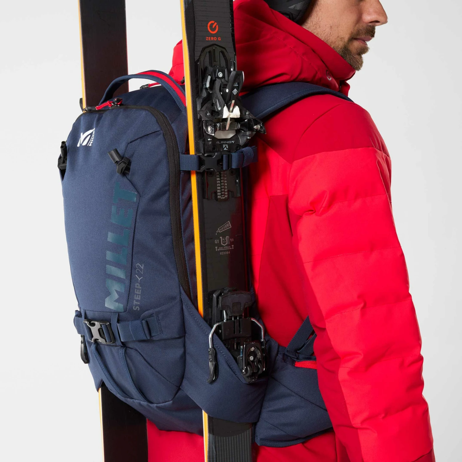 Millet Steep 22-rygsækken giver dig mulighed for at organisere dit udstyr på en ideel måde, så du fuldt ud kan nyde skisport/boarding og friheden ved freeriding. Denne kompakte rygsæk er udstyret med et tætsiddende rygsystem og et superviklende hoftebælte, der sikrer stabilitet under kørslen. Den er robust, designet til brug uden for pisten og er nem at håndtere selv med handsker på. Med sit volumen på 22 liter er Steep 22 en prisbillig blåstjerne til alle snesportgrene. Rygsækken har et dobbelt rum til skovl og sonde, fastgørelsesmuligheder til ski, snowboard, teleskopstokke og isøkse samt et dedikeret rum til din væskeblære.