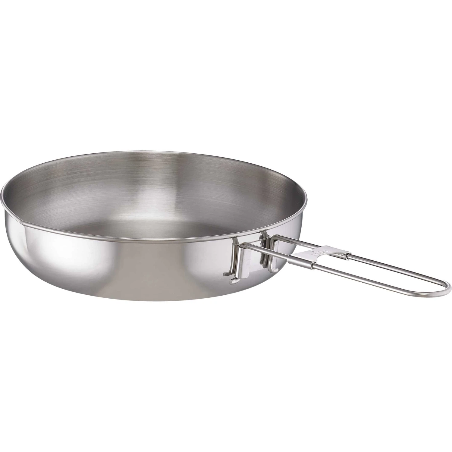 Hvis du virkelig ønsker at lave mad som derhjemme, kan du gøre det med vores Alpine Skillet i rustfrit stål. Hemmeligheden er en varmefordelende aluminiumsskive, der er svejset fast i bunden, ligesom førsteklasses kogegrej til hjemmet. Resultatet er en effektiv og jævn varme, der holder dine måltidsmuligheder vidt åbne.