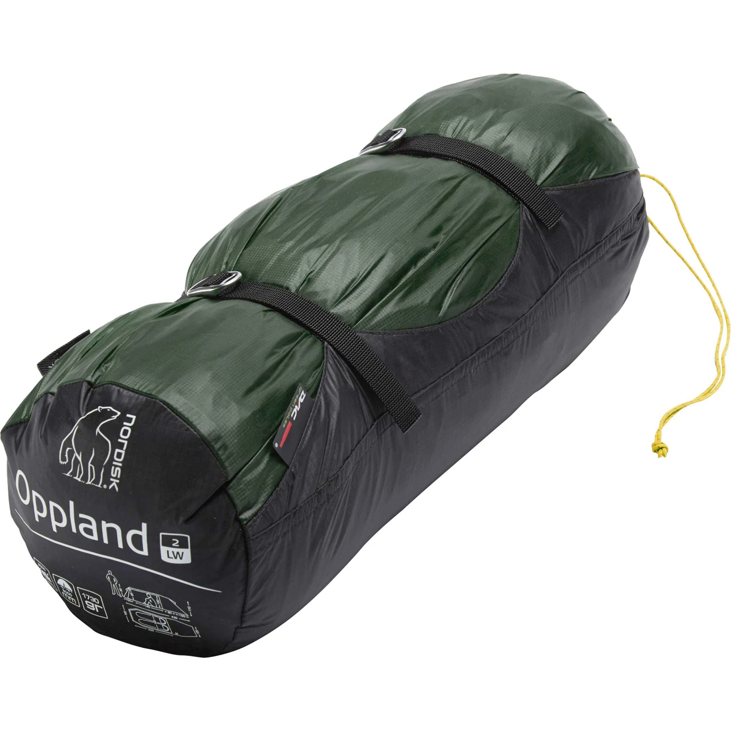 - Spændetov: 2 mm Dyneema (ekstra spændetov medfølger til omdannelse af dør til apsis) medNordisk alu trekantet skyder