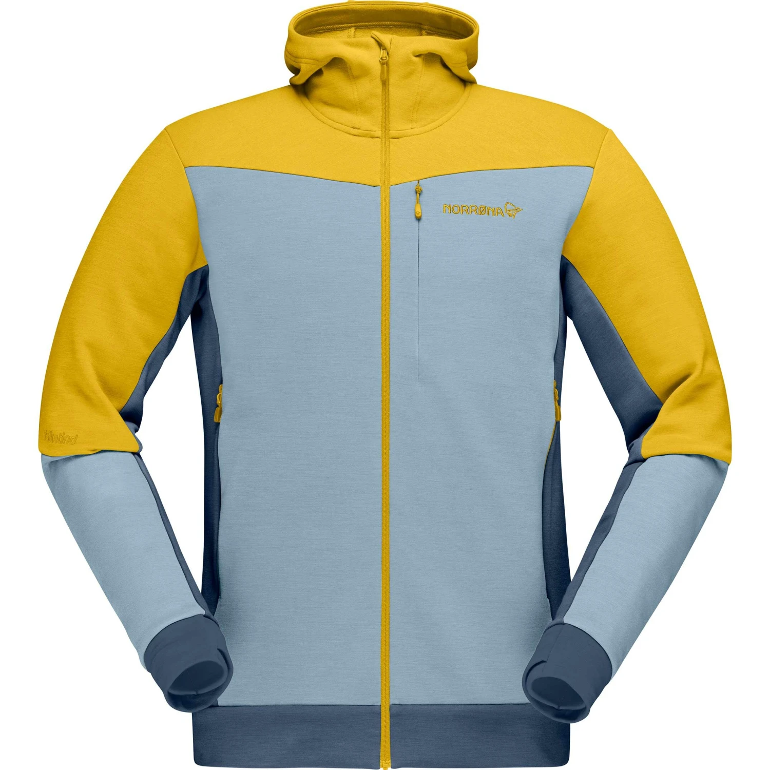 Jakken er meget strækbar, og hovedstoffet er en blanding af genbrugspolyester og uld med fremragende varmeegenskaber og god åndbarhed. Den giver god fugttransport, når du beslutter dig for at øge tempoet, og tørrer hurtigt op, når du hænger op takket være polyesteren.