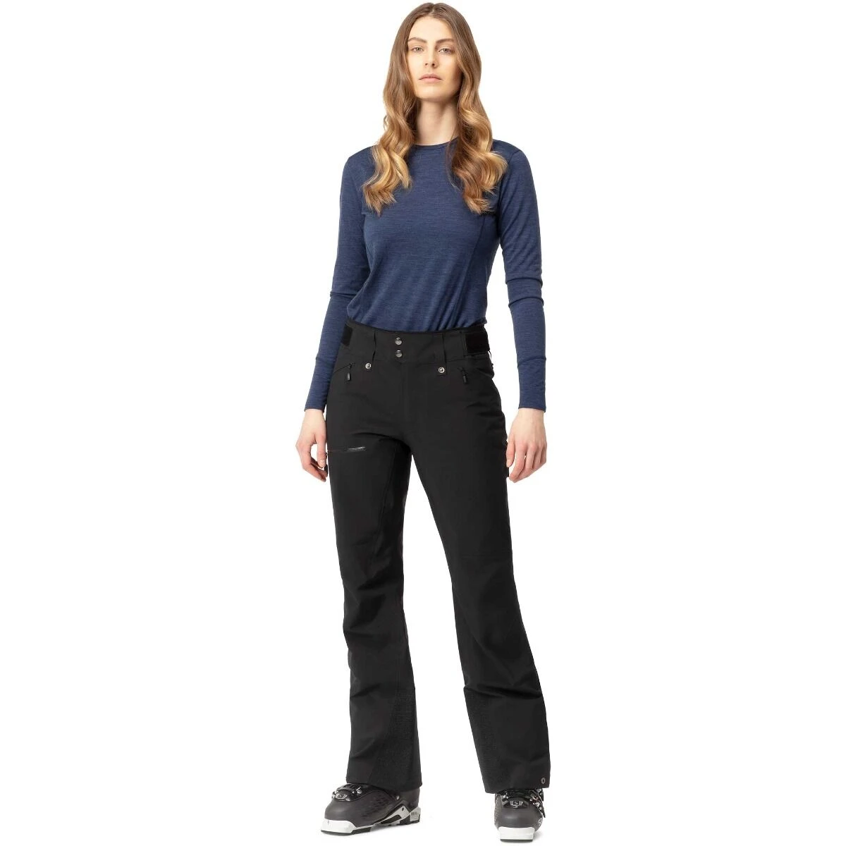 De har optimeret taljen for at undgå huller foran, når bukserne skal sættes på en bib eller jakke. Ved at have lynlåsen foran lidt ud mod siden har vi skabt et lille overlap, der giver en fuld tætning. Den nederste benvidde, der nemt kan rumme en ski eller snowboardstøvle i gangtilstand.