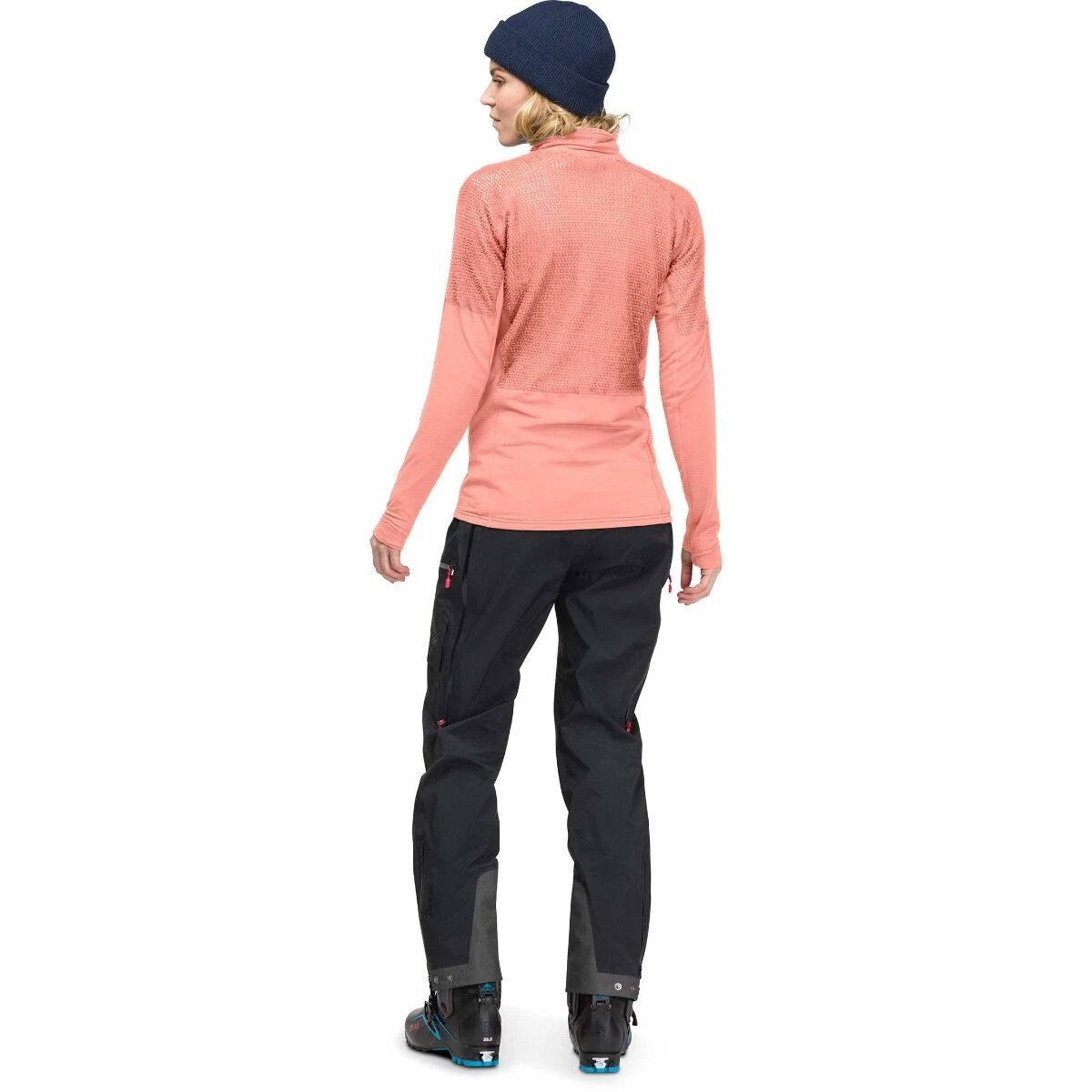 Dette giver en ekstremt åben og effektiv konstruktion, og jakken kan bruges som et baselayer. Modellen er iført størrelse L (Højde 188 cm / 6’2″)