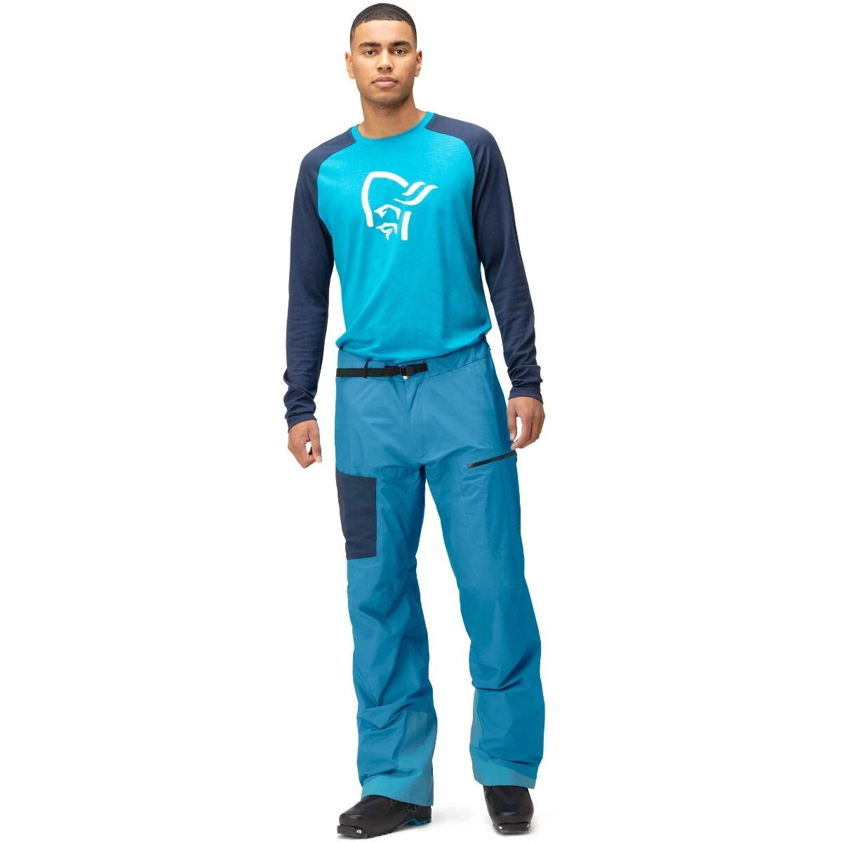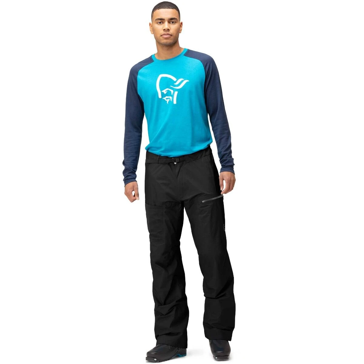 Norrøna bruger Gore-Tex Paclite® 4 Plus stof (RET mindre end 9) et blødt, let lille rip-stop stof med en 20D genanvendt nylonoverflade. Det er utroligt pakkevenligt, tyndt og let, samtidig med at det er holdbart vandtæt, vindtæt og giver fremragende åndbarhed. Det har trykte prikker på bagsiden med en 3D-funktion for at holde afstand til kroppen og skabe højere friktion og en mindre klæbrig holdbar inderside. Bundbenet er forstærket med et letvægts 200D Vectran-stof for at øge holdbarheden, hvor bukserne har tendens til at gnide mod støvler eller stålkanter.