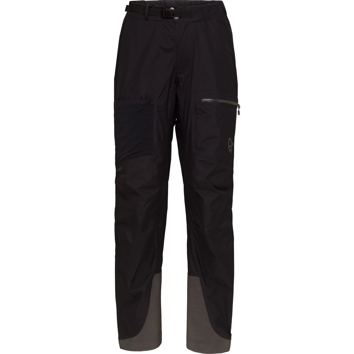 Norrøna bruger Gore-Tex Paclite® 4 Plus stof (RET mindre end 9) et blødt, let lille rip-stop stof med en 20D genanvendt nylonoverflade. Det er utroligt pakkevenligt, tyndt og let, samtidig med at det er holdbart vandtæt, vindtæt og giver fremragende åndbarhed. Det har trykte prikker på bagsiden med en 3D-funktion for at holde afstand til kroppen og skabe højere friktion og en mindre klæbrig holdbar inderside. Bundbenet er forstærket med et letvægts 200D Vectran-stof for at øge holdbarheden, hvor bukserne har tendens til at gnide mod støvler eller stålkanter.