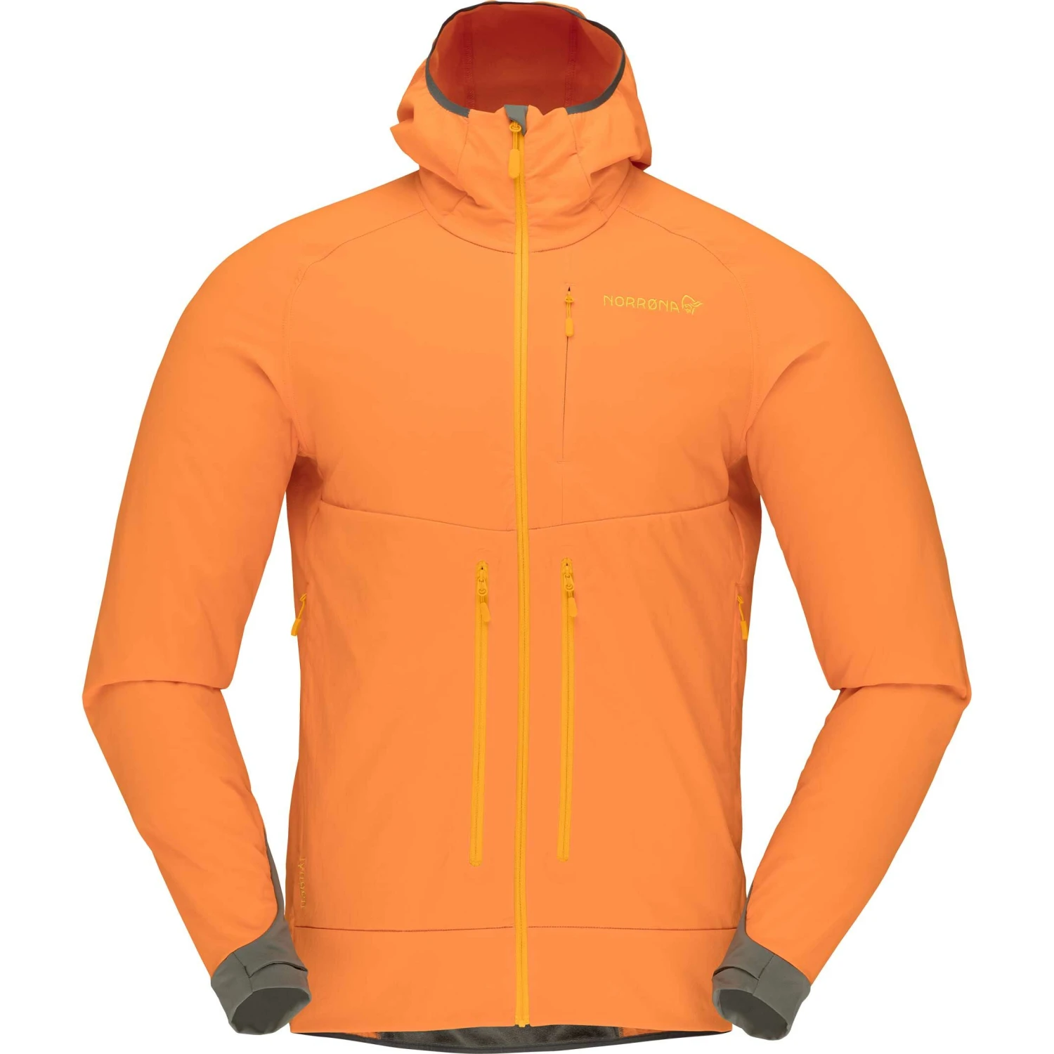 Hovedstoffet er et teknisk (191 gram/m2) dobbeltvævet stof, der er konstrueret med 61 % genbrugsnylon/29 % polyester/9 % elastanblanding, som giver en unik kombination af varme og vejrbeskyttelse. Det har en slidstærk overflade på grund af den vævede flade overflade, som gør det stærkt over for slid og holder materialet vind- og vandafvisende. Den luftige inderside giver fremragende termiske egenskaber med et godt forhold mellem varme og vægt, og takket være den åbne konstruktion er stoffet meget åndbart.