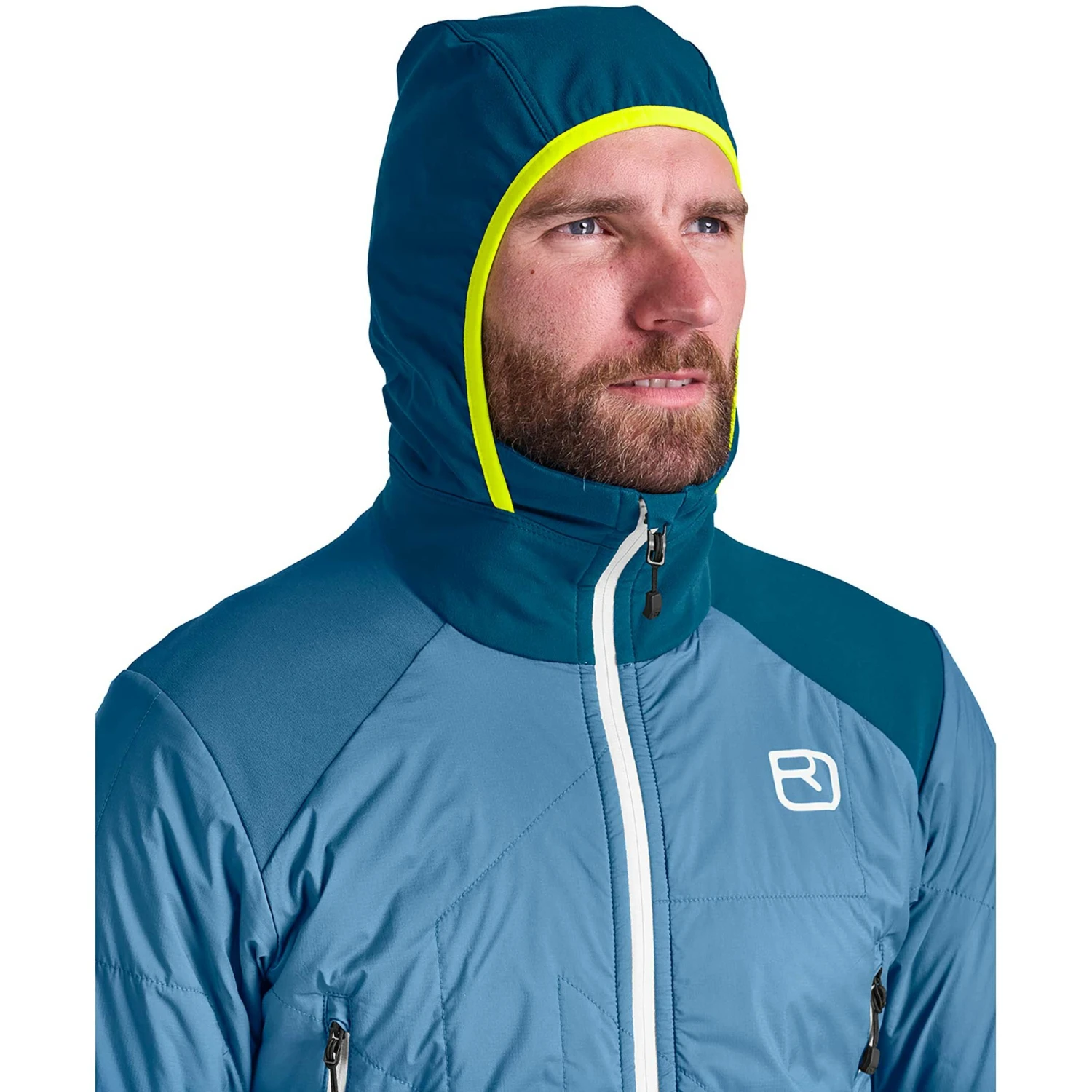 Krævende skiture i bidende kulde: Ortovox Swisswool Col Becchei Hybrid Jacket til mænd giver optimal beskyttelse og maksimal bevægelsesfrihed.