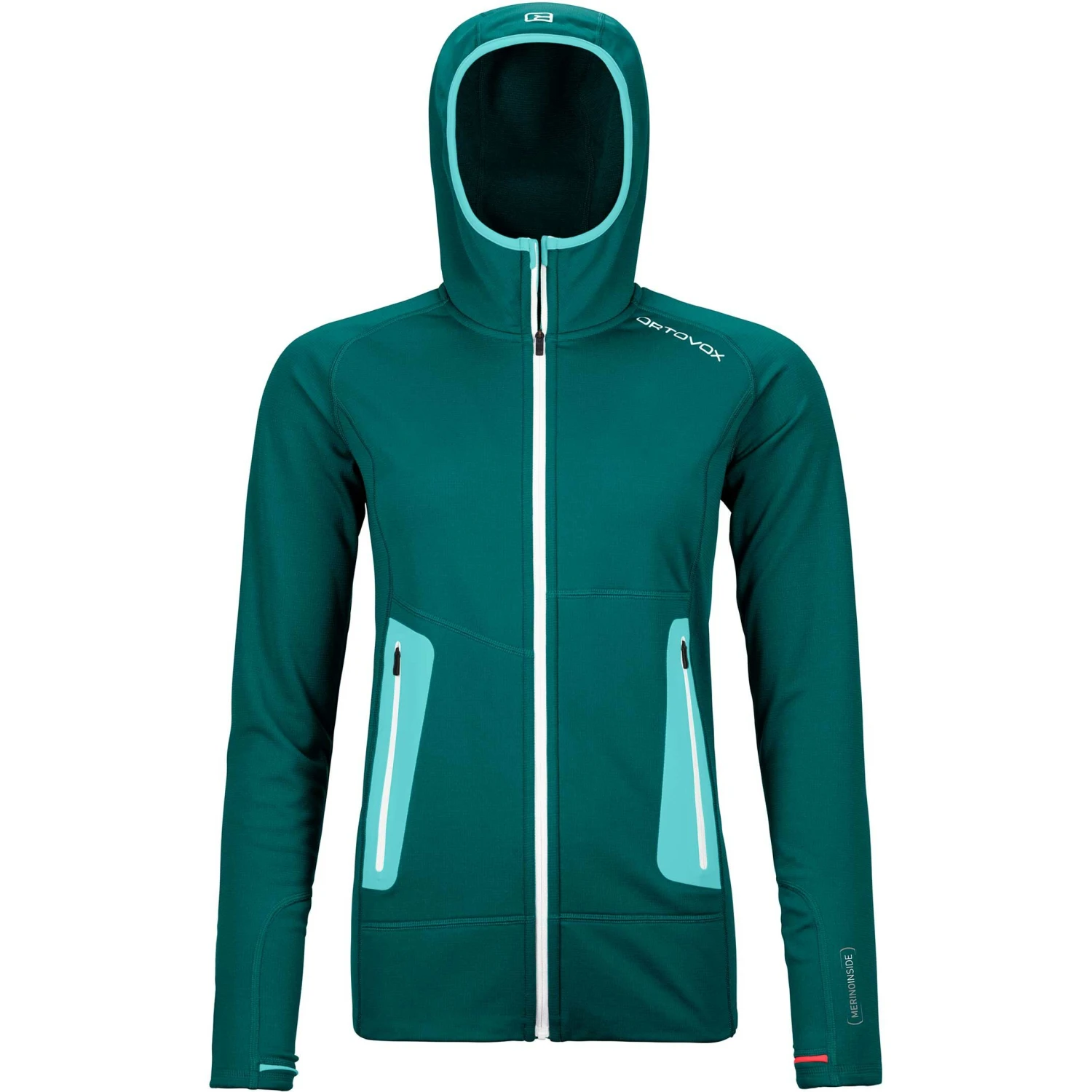 Tekniske funktioner såsom rygsæk-kompatible forlommer, en fastgjort ramme og tommelfingerløjer med lukning af mellemrum gør vores Fleece Light Hoody til kvinder til et ideelt andet lag – til alle årstider. Fin tasmansk merinould og den indre vaffelstruktur sikrer god fugttransport og føles tør på huden under anstrengende aktiviteter. Materialet er også ekstremt åndbart, hurtigtørrende og meget strækbart. Ydersiden er glat, så materialet giver mindre kontaktflade.