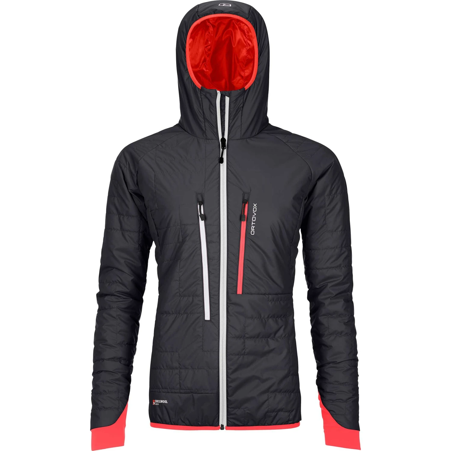 Et 60 g/m2 SWISSWOOL®-for giver ikke kun en fremragende isolering mod kulde, fibrene har også en fugtregulerende funktion, idet de absorberer op til 35 % af deres egen vægt i fugt. Takket være det atletiske snit og den elastiske Merino Naturetec Light i ryggen tilpasser Ortovox Piz Boé Jacket til kvinder sig alle dine bevægelser, selv i det mest krævende terræn. den tætsiddende, elastiske hætte, den elastiske linning og de elastiske manchetter holder vind og kulde på afstand på iskolde bjergtoppe. De to generøse forlommer og brystlommen giver plads til de ting, du har brug for at have ved hånden, selv om du har en rygsæk eller et bælte.