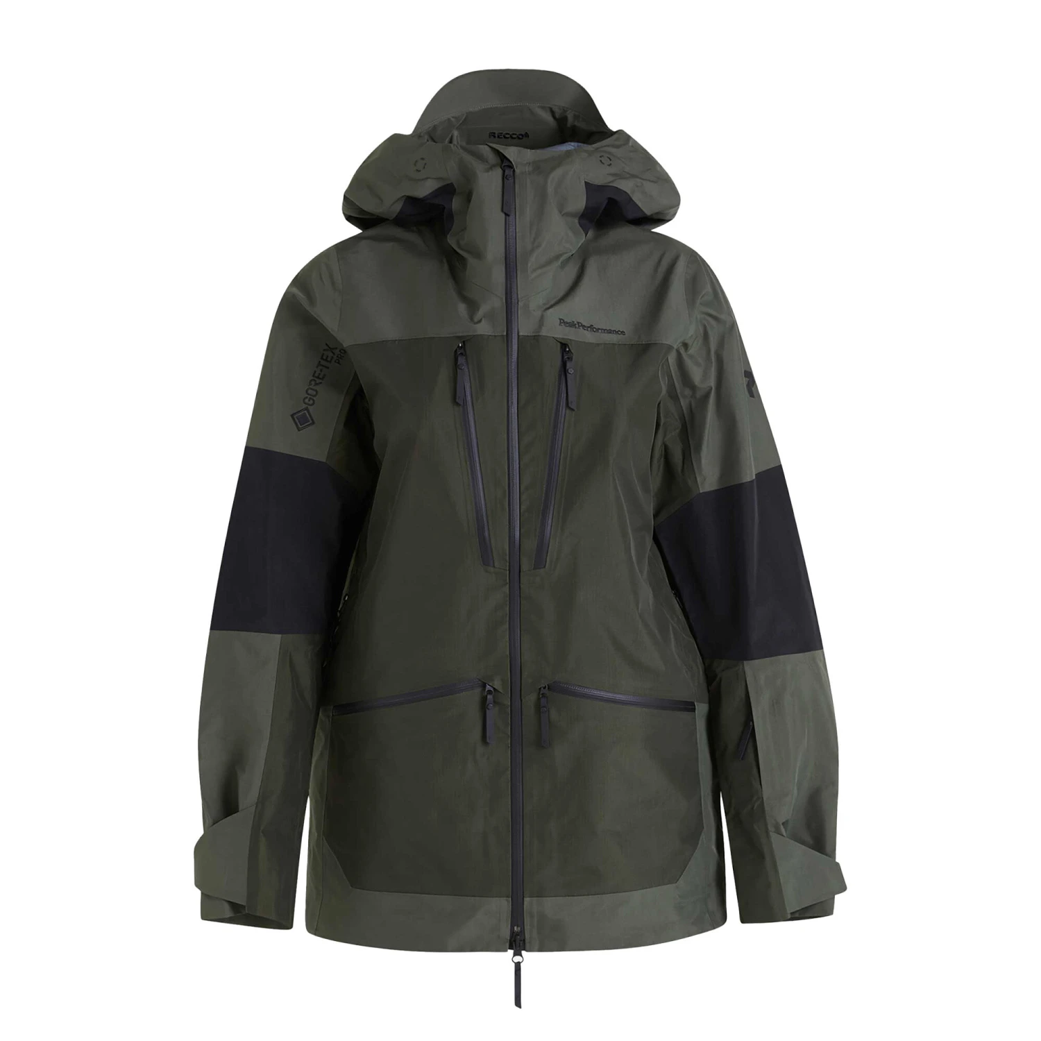 Peak Performance Vertical Pro Jacket Women, Vertical PRO-serien er udviklet i tæt samarbejde med professionelle skiløbere og kombinerer avancerede materialer med innovativt og funktionelt design. Den er fremstillet af både GoreTex® Pro og GoreTex® Stretch og beskytter mod vind og vand, samtidig med at den giver fremragende åndbarhed og mobilitet. Denne skaljakke er designet med en ny hætte-løsning og giver ekstra beskyttelse. Fremstillet af genbrugsfibre.