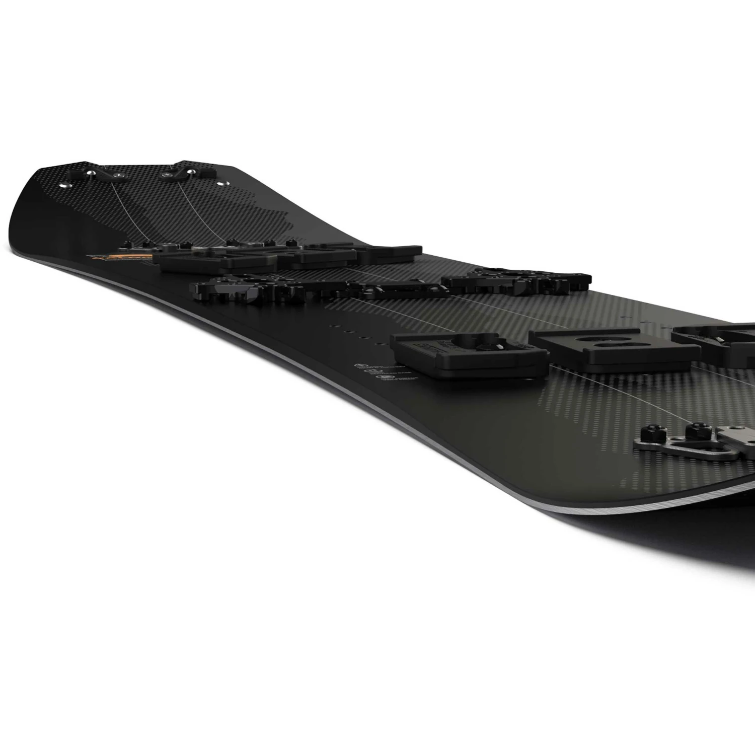 Lige linje mellem indsatserne giver mulighed for opkaldt hastighedskontrol ved tilgang til rails og hop. Den radiale sidecut uden for indsatserne passer til både kreative og nybegynderdrejninger.