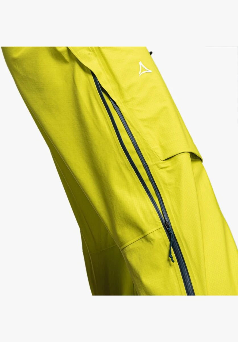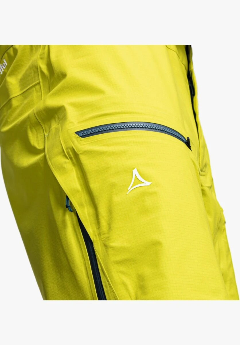 Schöffel 3L bukser Sass Moar.Skiture uanset vejret – det er muligt i Schöffel bukser. De tilbyder optimal regnbeskyttelse takket være GORE-TEX®-materialet med en vandsøjle på 25.000 mm. Følgelig er de vindtætte, vandtætte og åndbare. Hvis du selv ønsker at regulere dit kropsklima, kan du åbne de to ventilationslynlåse for ekstra ventilation. Arrangementet af de to lårlommer er perfekt gennemtænkt. De sikrer, at ventilationen er åben, og at luften kan cirkulere, men at der ikke kan komme sne ind i bukserne udefra. Derudover har Schöffel-skiturebukserne forstærkninger ved benafslutningen for at beskytte mod skikantstød og en fast sneskærm.