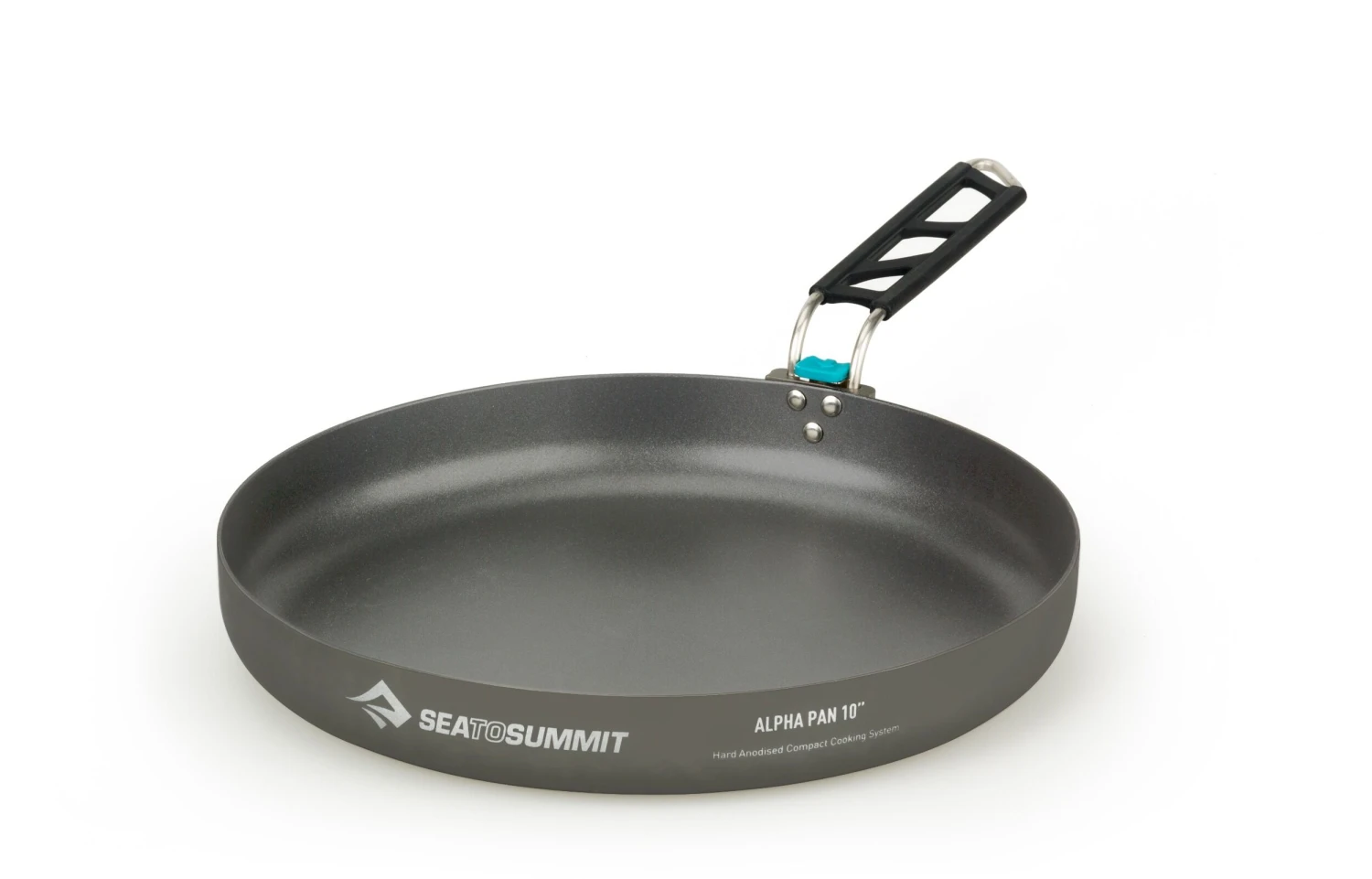 Sea to Summit Alpha Pan er perfekt til at vende pandekager i baglandet, og den er let og nem at pakke til ethvert eventyr. Det ergonomiske flip-up-håndtag med sikkerhedslås kan foldes ind under for kompakt opbevaring og gør det muligt at placere den pænt uden for en 3,7L Alpha Pot, mens den avancerede, PFOA-frie, non-stick-overflade giver en holdbar, slidstærk overflade og en overlegen varmefordeling for hurtigere og mere jævn tilberedning.