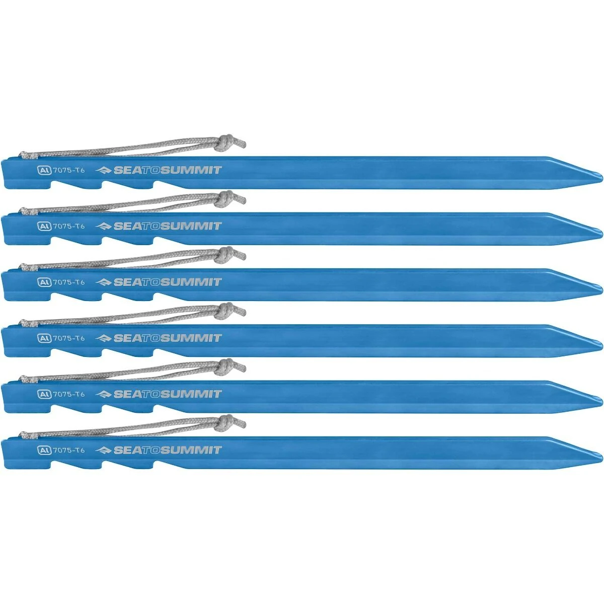 Sea to Summit ultralette, men superstærke Ground Control Light teltpløkker er standardudstyr på alle Alto og Telos telte og kan også fås separat. Den unikke TriPoint-form har en bred frontflade for at maksimere grebet i varierende terræn, mens den korte ryg øger stivheden. De unikke flere hak gør det muligt at fastgøre spændesnoren tættere på jorden for en mere sikker forankring. Disse ultralette teltpløkker er fremstillet af en førsteklasses 7075-T6 aluminiumslegering i flykvalitet, der er usædvanlig stærk og stiv – og alligevel vejer hver pløk kun 7 g.