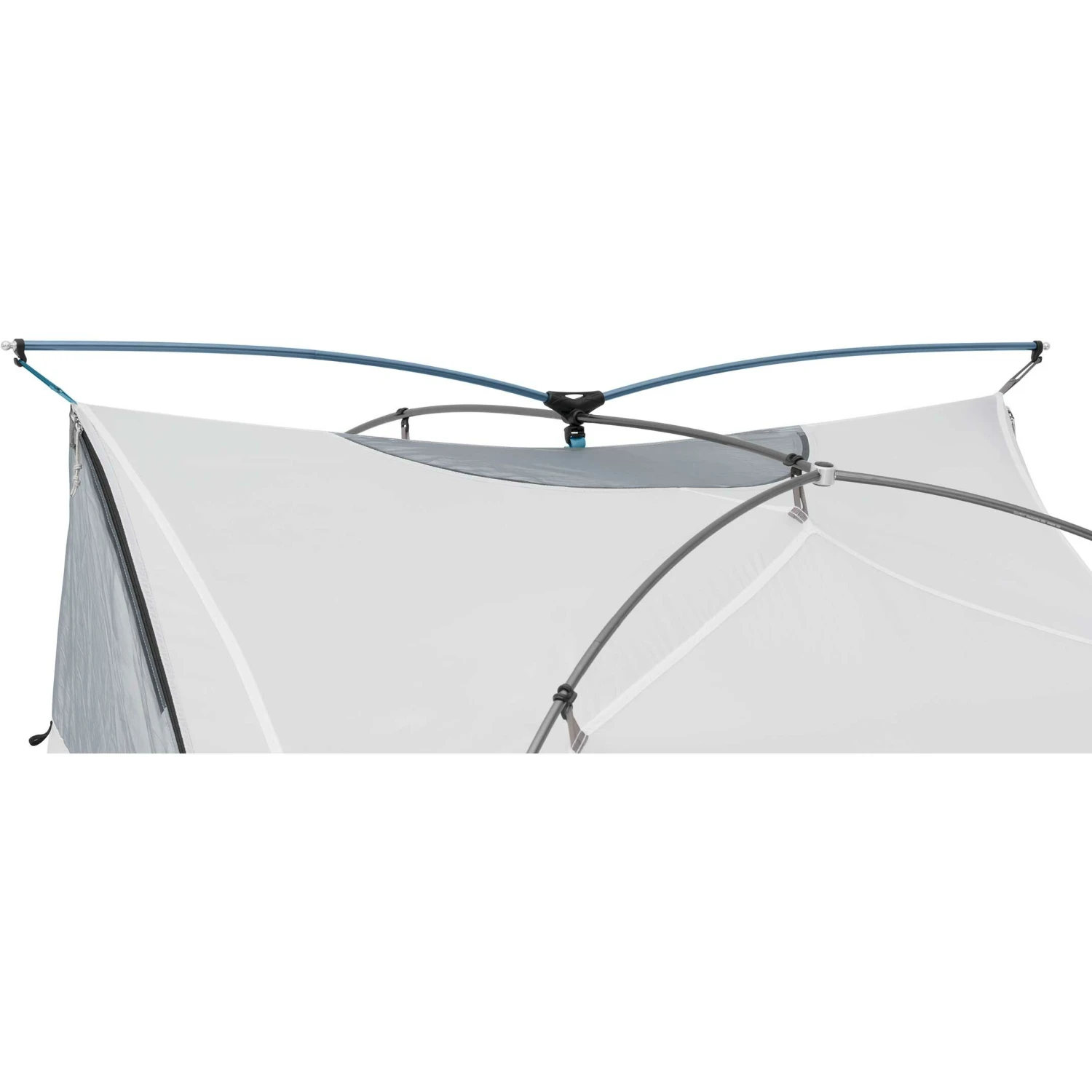- Stængerne i Tension Ridge er fejede opad – ikke vinklet nedad som det er almindeligt i telte. Dette hæver teltets form, hvilket giver betydeligt mere beboeligt rum