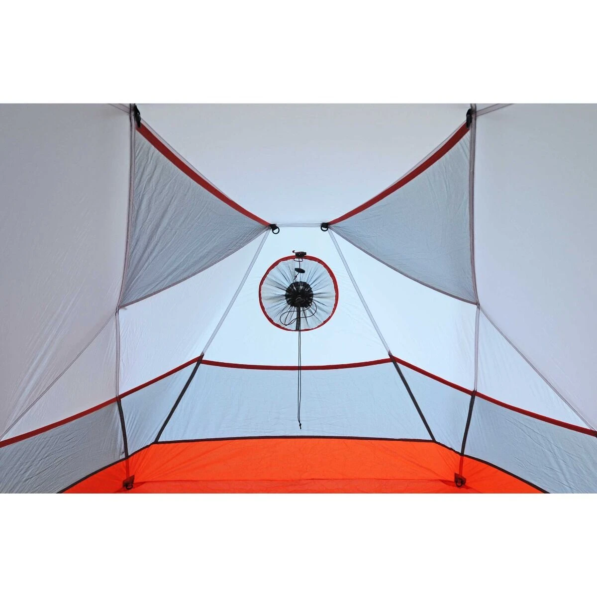 Det indre af WindSaber er formet for at maksimere den brugbare plads og har flere lommer, end du kan ryste en pind på. Masser af o-ringe giver intern guyline-kompatibilitet samt rigeligt med steder til at hænge ting op. To dobbeltdøre med lynlås i mesh/ripstop på den anden side giver hurtig ind- og udstigning og vil ikke blive klistret til med spindrift. For at ventilere WindSaber skal du åbne udluftningsåbningen med snor i foden af teltet, som har en tilsvarende udluftning i teltets overligger. Udluftningsåbningen med snor har også et netlag, som gør det muligt at udlufte teltet, selv når det er uvejr. Åbn toppen af døren, og du får en dejlig tværgående brise, der holder kondensvand til et minimum. Vestibulen åbninger hver har en kickstand vent.