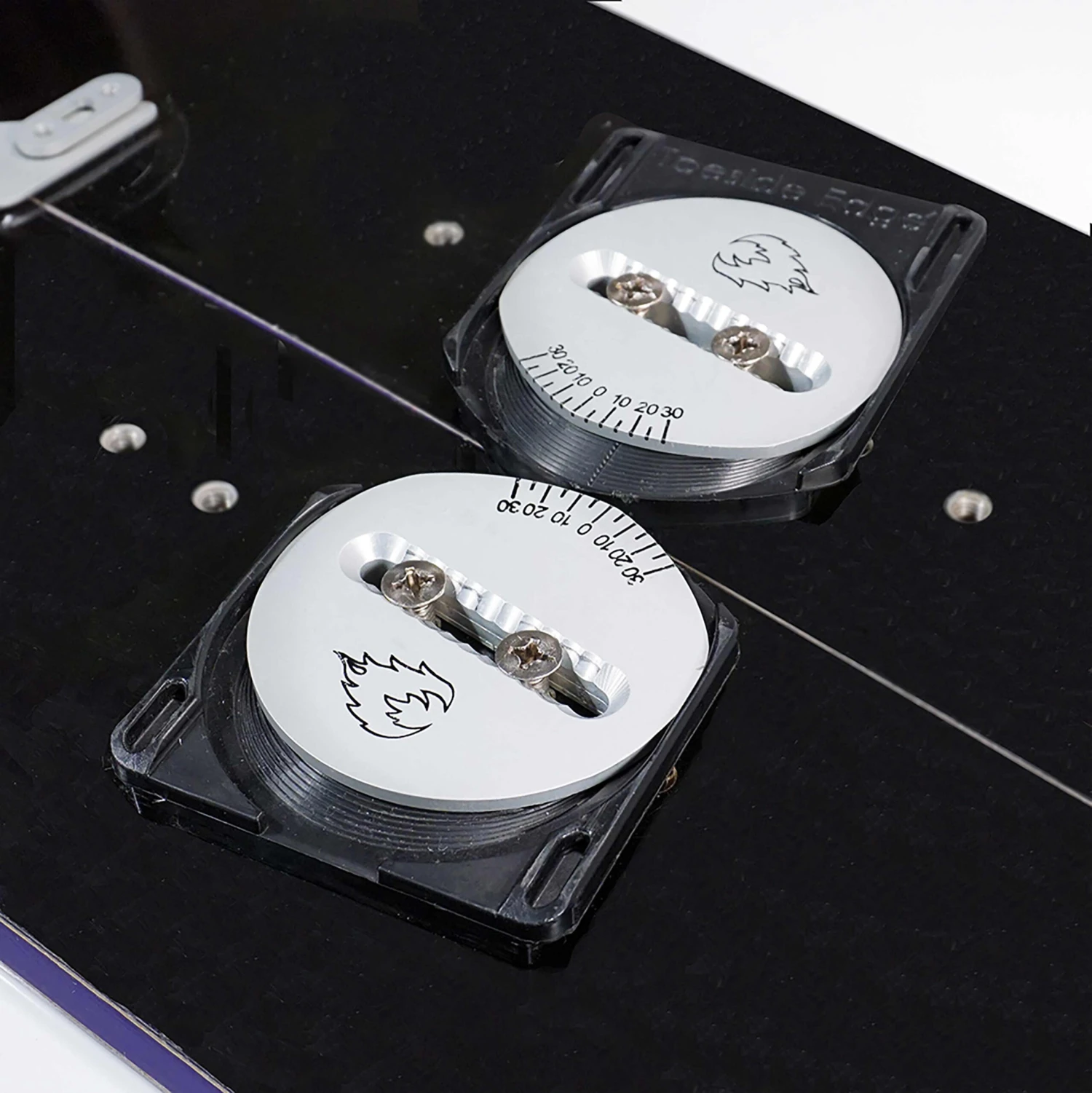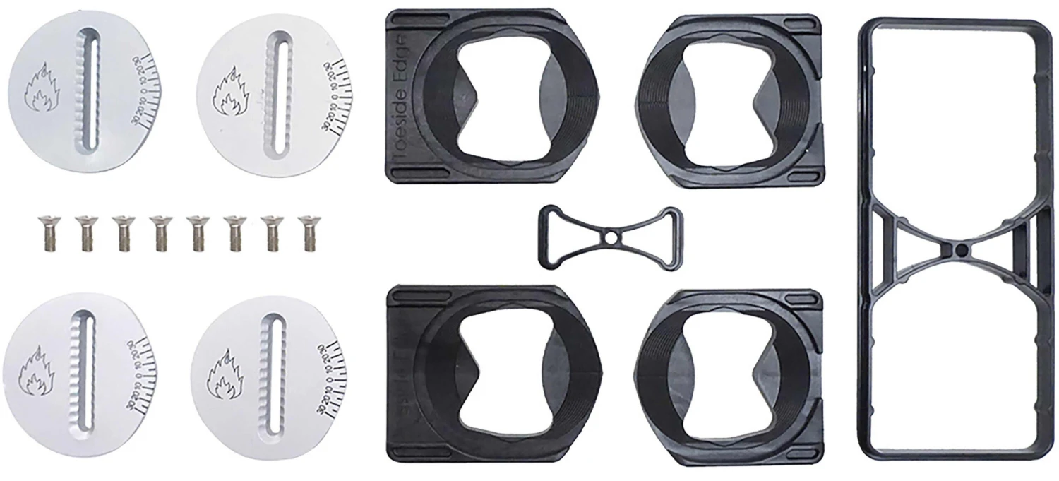 Alle de samme fantastiske funktioner som vores Spark Pucks, men med 3° hældning for at reducere belastningen af knæene. Næsten uendelig justerbarhed til splitboards med indsatser. Hurtig montering med superfine justeringer af fodplacering, vinkel og centreringen af tå/hjul.