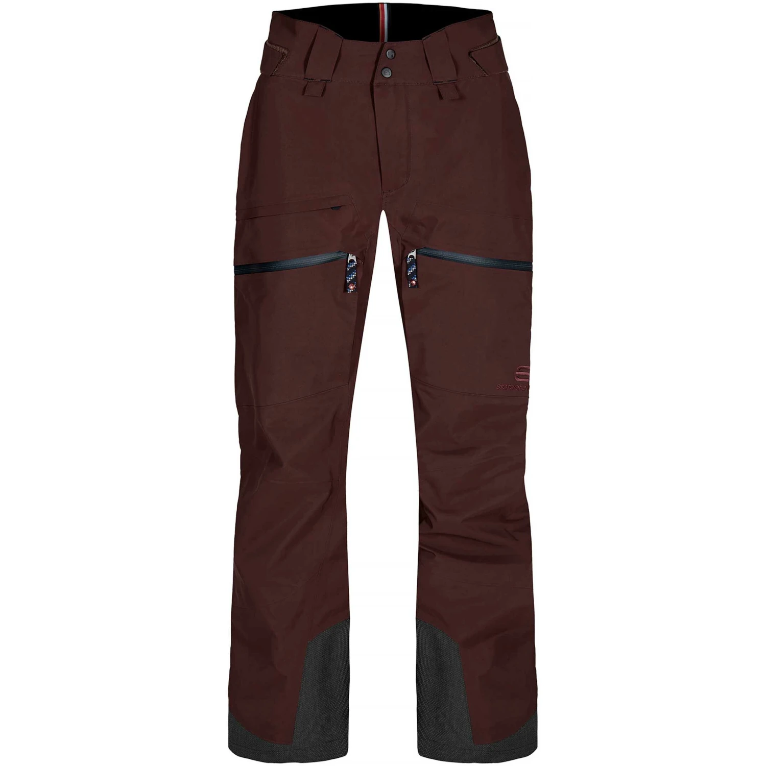 Intet bøvl, bare funktion – i vores Pure Pants har vi fokuseret på det vigtigste til fantastiske dage på sneen. Det holdbare 3-lags Gore-tex holder kraftig vind og nedbør på afstand og har en glat flannel-lignende bagside, der giver lidt ekstra varme og komfort. Perfekt, når de fleste af dine dage går med at udforske tyngdekraften og flowet på bjerget. Designet er rent med fokus på det væsentlige, som f.eks. tovejsventilationslynlåse i siderne og en lomme til opbevaring af din transceiver. Underbenene har forstærkninger hele vejen rundt for at modstå snit og blå mærker, og benafslutningerne er formet til at fungere godt med skibindinger. God pasform med en høj talje og forformede knæ giver mulighed for masser af bevægelse.
