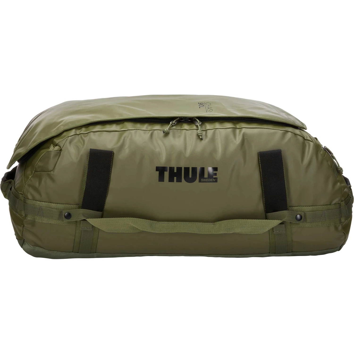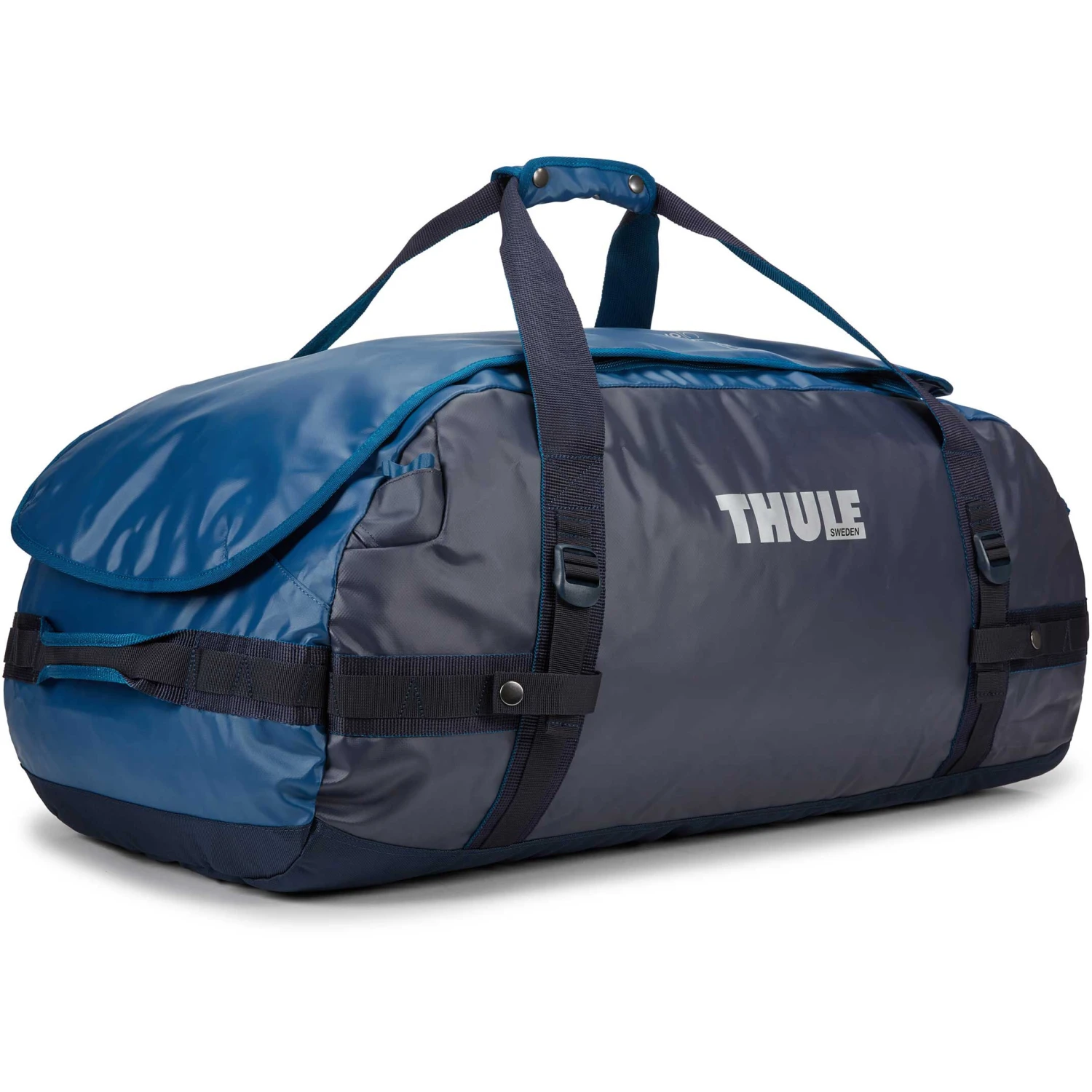 Thule Chasm 90L er en robust, vejrbestandig duffel med aftagelige rygsækstropper og en bred åbning.