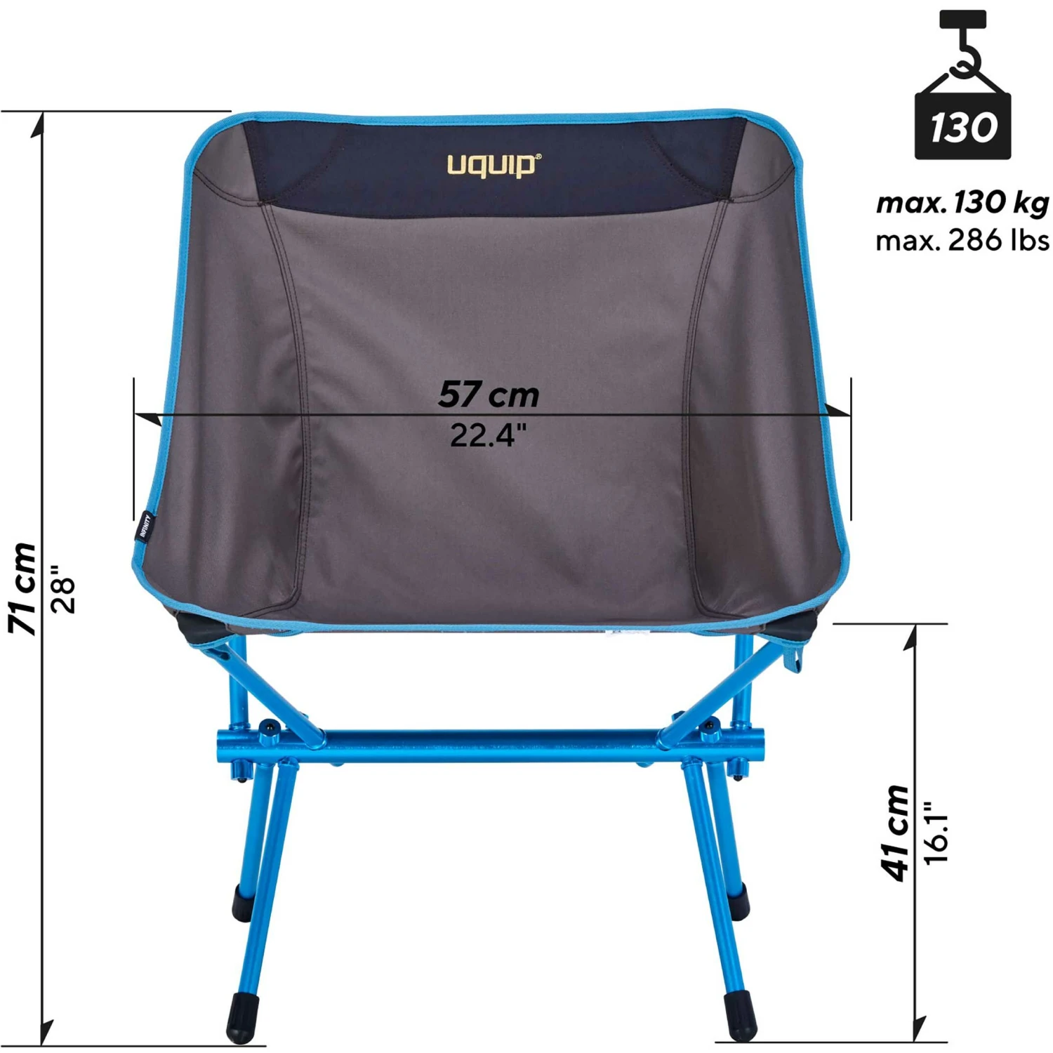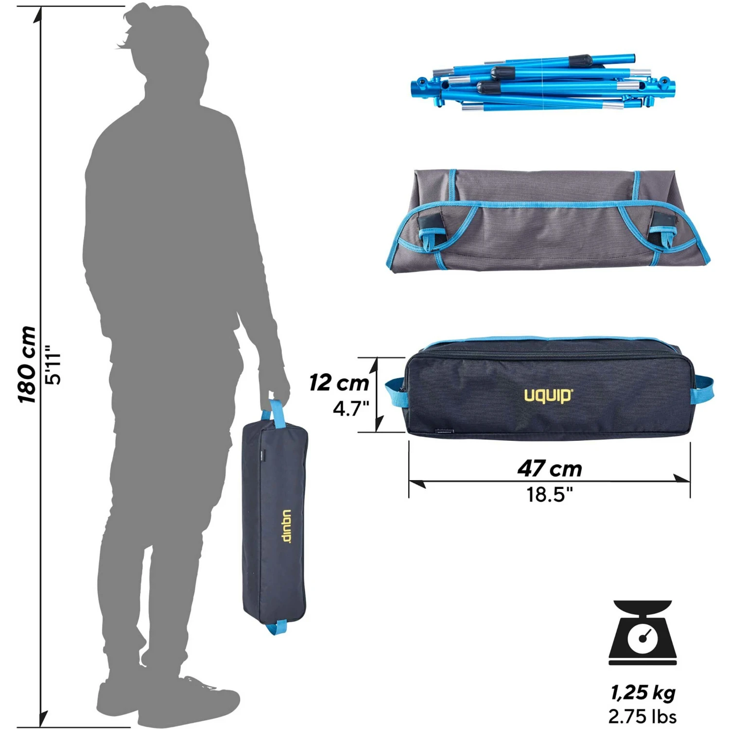 Uquip Infinity har fremragende siddepladser uden at skulle gå på kompromis med vægt eller pakkestørrelse. Infinity Lounger er ekstremt let og kan pakkes småt, så den er aldrig en byrde, selv på de længste rejser. Den er fremstillet af slidstærke materialer af høj kvalitet og tåler nemt selv den hårdeste belastning, og takket være det intelligente design kan den opstilles og være klar til brug på et øjeblik. Den medfølgende paksæk giver plads til opbevaring, som nemt kan fastgøres til stellet og dermed omdannes til en praktisk taske på ingen tid. Det faste stativ, den robuste aluminiumsramme og det slidstærke rip-stop polyester sikrer et sikkert og komfortabelt sæde, præcis hvor du ønsker det.