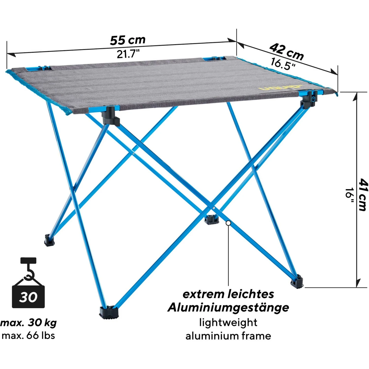 Uquip Liberty er et let og robust bord fremstillet af 600D rip-stop polyester. Bordet vejer kun 1050 g og har et lille pakningsmål på 58 x 7 cm. Liberty er kompakt, let, men alligevel stabilt og er derfor velegnet til enhver tur. Uquip Liberty-bordet kombinerer en ekstremt stabil konstruktion med materialer af høj kvalitet og optimal funktionalitet.
