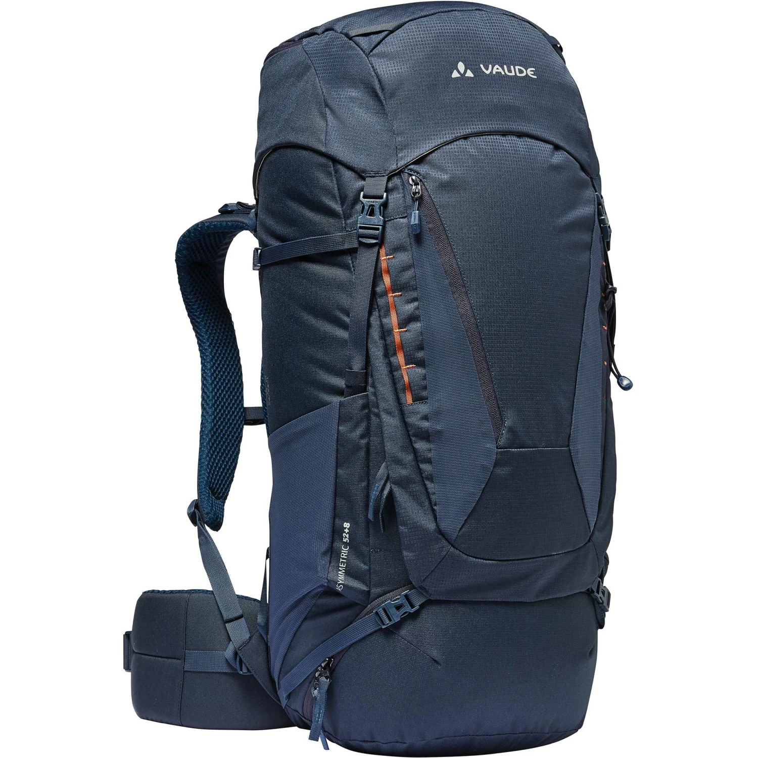 Vaude Asymmetric 52+8 er ikke kun en god følgesvend til hyttehop-ture og alpint trekking, men med 52 liter volumen er den også et godt valg til rygsækrejser og langdistanceture. Tergolight Comfort Space-ophængssystemet sikrer optimal fordeling af lasten. Du kan individuelt justere ryglængden, lastplaceringsstropperne og Ergoshape-skulderstropperne, så de passer til din egen krop. Den er usædvanlig rygvenlig takket være en fordybning i rygpolstringen, der aflaster sacroiliacaleddet for at forhindre ømme rygge. Et godt polstret hoftebælte letter belastningen og gør rygsækken endnu mere behagelig at bære. Specielt konstruerede skulderstropper giver masser af bevægelsesfrihed for dine arme. Hovedrummet kan tilgås fra toppen eller fronten. Adskillelsen til det nederste rum kan også nemt fjernes for at få mere plads i hovedrummet. Alt, der skal være let tilgængeligt, når du er på farten, passer i det elastiske frontrum med optimeret ventilation – selv vådt tøj kan tørre her. Du kan nemt få adgang til sidelommerne i stretchlommerne, mens du har rygsækken på. En isøkse eller trekkingstokke kan fastgøres til gearsløjfen og dine klatrejern til daisy chain – ideelt til alpint terræn! To kompressionsremme på hver side holder trekkingpakken slank, ligesom den øverste kompressionsrem med et udskiftningsspænde, hvis en af dem går i stykker, mens du er på eventyr. Du kan øge pakkens volumen med 8 liter med det højdejusterbare låg. VAUDE Green Shape-mærket står for miljøvenlige, funktionelle produkter fremstillet af bluesign®-certificerede, bæredygtige materialer.