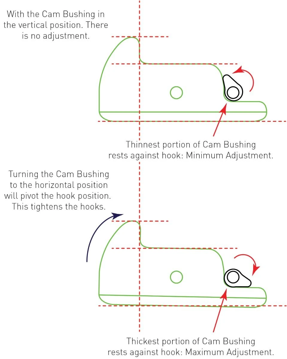 Voilé Cam Bushing er designet som en enkel, brugervenlig mekanisme til at fjerne løst spil i dine splitboardkroge. Uanset om det er din gamle DIY eller din foretrukne fabriks-split, giver Cam Bushing mulighed for 2 mm justering, hvilket eliminerer behovet for at bore eller udskifte din aldrende hardware.