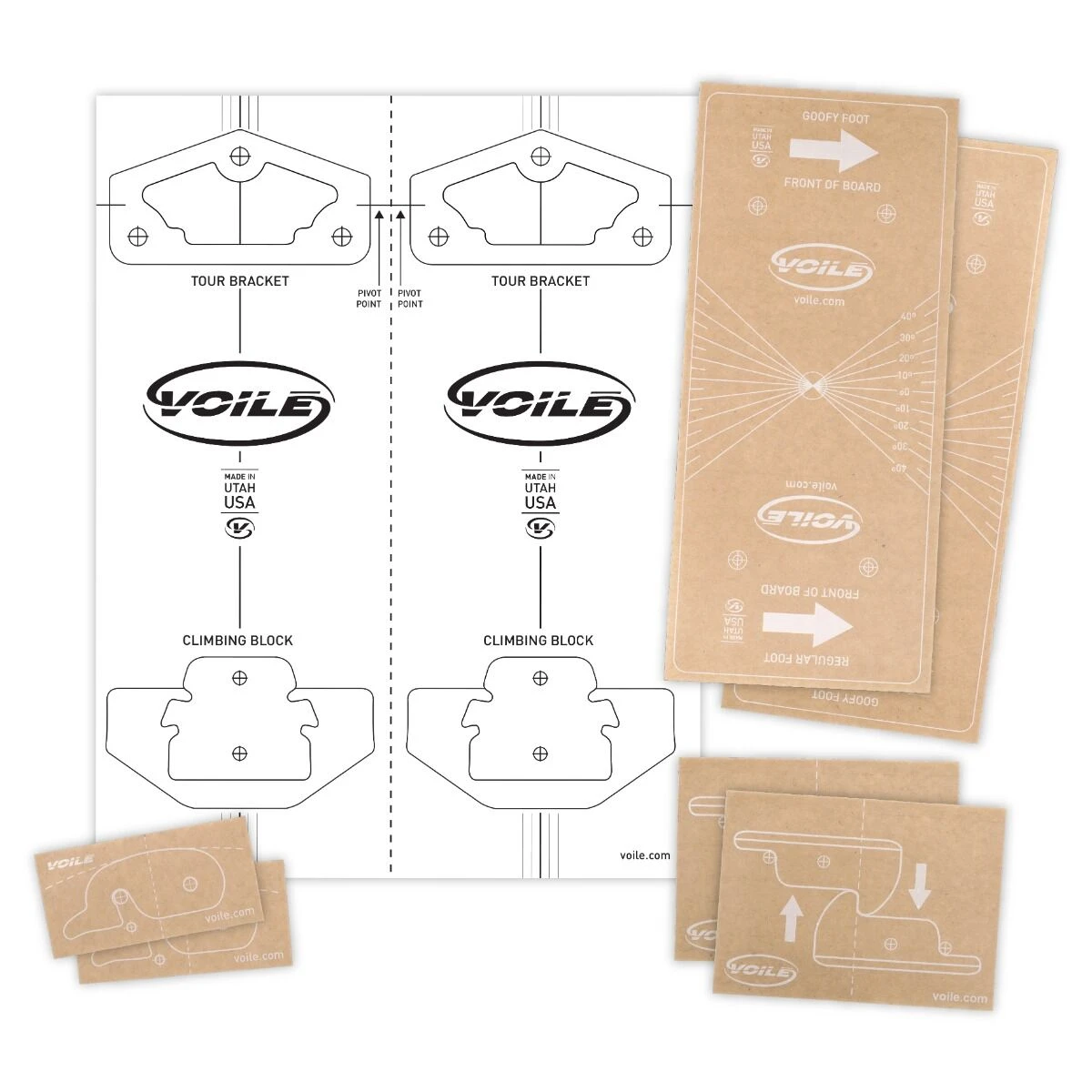 Inkluderer: 2 skabeloner til montering af Split Kit Pucks, 2 skabeloner til montering af Split Hooks, 2 skabeloner til montering af Tip Clips, og 2 skabeloner til montering af Touring Brackets.